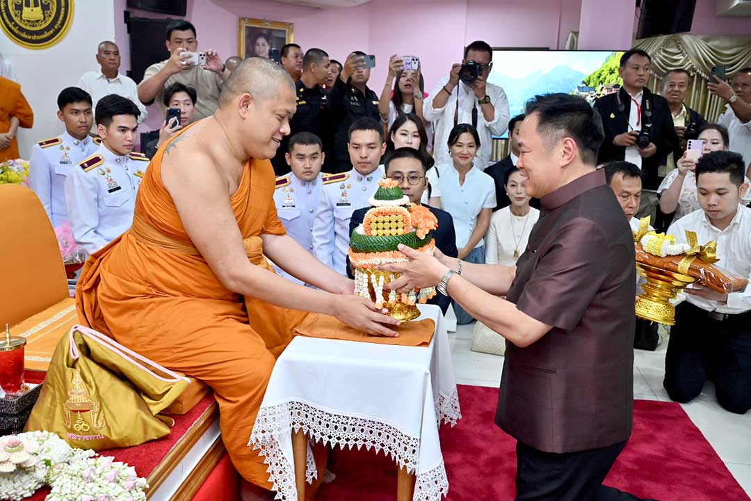 วันนี้ (28 เม.ย. 69) เวลา 15.20 น. ที่โรงเรียนโฆสิตสโมสร วัดระฆังโฆสิตาราม วรมหาวิหาร เขตบางกอกน้อย กรุงเทพฯ นายอนุทิน ชาญวีรกูล นายกรัฐมนตรีและรัฐมนตรีว่าการกระทรวงมหาดไทย พร้อมด้วยนายไชยวัฒน์ จุนถิระพงศ์ เลขานุการรัฐมนตรีว่าการกระทรวงมหาดไทย นายอรรษิษฐ์ สัมพันธรัตน์ ปลัดกระทรวงมหาดไทย นายสมภพ สมิตะสิริ หัวหน้าผู้ตรวจราชการกระทรวงมหาดไทย และพุทธศาสนิกชน ศิษยานุศิษย์ ร่วมถวายมุทิตาสักการะ ในโอกาสรับพระราชทานสัญญาบัตร พัดยศ และผ้าไตร รับพระราชทานโปรดสถาปนาสมณศักดิ์ ในราชทินนามที่ "พระราชวชิรธรรมโฆษิต"
