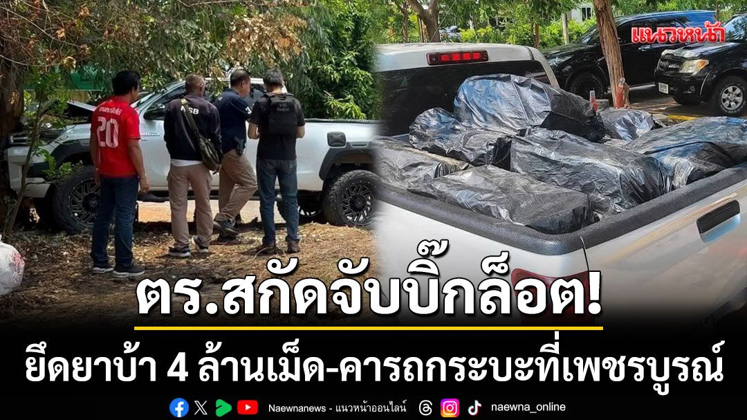 สืบเนื่องจาก เมื่อวันที่ 28 เมษายน 2569 เวลา 11.45 น. เจ้าหน้าที่ชุดจับกุมสามารถสกัดรถเป้าหมายได้บริเวณถนนหมายเลข 2219 รอยต่อบ้านแม่น้ำแควป่าสัก และบ้านใหม่สาลิกา อ.ศรีเทพ จ.เพชรบูรณ์ โดยผลการตรวจค้นรถกระบะสีขาว ทะเบียนเชียงใหม่ พบกระสอบฟางจำนวน 16 กระสอบ วางอยู่ท้ายกระบะ ภายในบรรจุยาบ้ากระสอบละ 250,000 เม็ด รวมของกลางทั้งหมด 4,000,000 เม็ด นอกจากนี้ยังสามารถสกัดรถยนต์นั่ง 7 ที่นั่งอีก 1 คัน ซึ่งทำหน้าที่เป็นรถนำและอำนวยความสะดวกในการลำเลียง