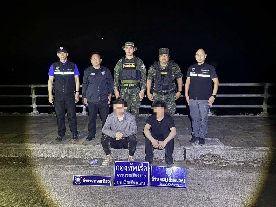 ขณะเดียวกัน ในพื้นที่อำเภอเชียงแสน น.ท.วรวิทย์ นพเก้า หัวหน้าสถานีเรือเชียงแสน ได้นำกำลังออกตรวจตราบริเวณบ้านสันต้นเปา ต.แม่เงิน จนพบชายชาวจีน 2 ราย มีท่าทางพิรุธและไม่สามารถสื่อสารภาษาไทยได้ เมื่อขอตรวจเอกสารพบว่าไม่มีใบอนุญาตเข้าเมืองอย่างถูกต้อง จึงได้ควบคุมตัวในข้อหาลักลอบเข้ามาในราชอาณาจักรโดยไม่ได้รับอนุญาต ส่งพนักงานสอบสวนเพื่อดำเนินคดีตามขั้นตอน