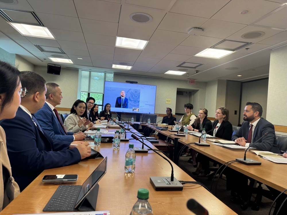 คณะผู้แทนไทยยังได้เข้าหารือร่วมกับ นายเกบ เอโม (Mr. Gabe Amo) สมาชิกสภาผู้แทนราษฎรสหรัฐฯ และสมาชิกคณะกรรมาธิการการต่างประเทศ สภาผู้แทนราษฎรสหรัฐฯ ซึ่งเป็นผู้นำในการขับเคลื่อนกฎหมายเกี่ยวกับการปราบปรามแก๊งคอลเซ็นเตอร์และการค้ามนุษย์ รวมถึง นายเดวิด วิลเลี่ยมส์ (Mr.David Williams) เจ้าหน้าที่อาวุโส กระทรวงการต่างประเทศสหรัฐอเมริกา และ นางเรเชล เอ็ม. พอยน์เตอร์ (Mrs. Rachel M. Poynter) รักษาการผู้อำนวยการสำนักงานติดตามและต่อต้านการค้ามนุษย์ (TIP Office) กระทรวงการต่างประเทศสหรัฐฯ ซึ่งรับผิดชอบในการประเมินระดับ Tier ของประเทศไทยในปีนี้ โดยได้ชี้แจงถึงความมุ่งมั่นและผลสัมฤทธิ์ที่เป็นรูปธรรมของไทย ซึ่งปัจจุบันอยู่ในระดับ Tier 2 ต่อเนื่องมา 4 ปี โดยตั้งเป้าหมายที่จะได้รับการยกระดับสู่ Tier 1 เพื่อส่งเสริมภาพลักษณ์ ตลอดจนสร้างความเชื่อมั่นต่อภาคการลงทุนและการท่องเที่ยวของประเทศ