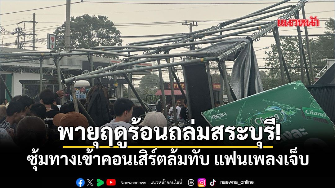 พายุฤดูร้อนถล่มสระบุรี! ซุ้มทางเข้าคอนเสิร์ต Virgin ล้มทับแฟนเพลง บาดเจ็บหลายราย