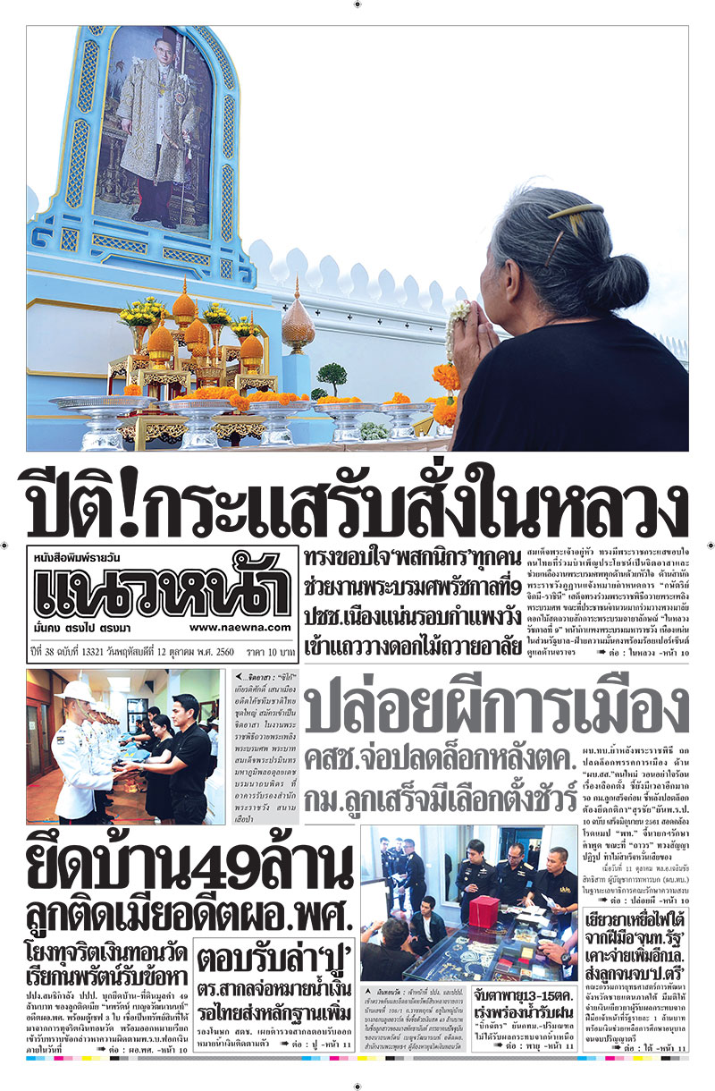 ปีที่ 38 ฉบับที่ 13321 ประจำวัน พฤหัสบดี ที่ 12 ตุลาคม พ.ศ. 2560