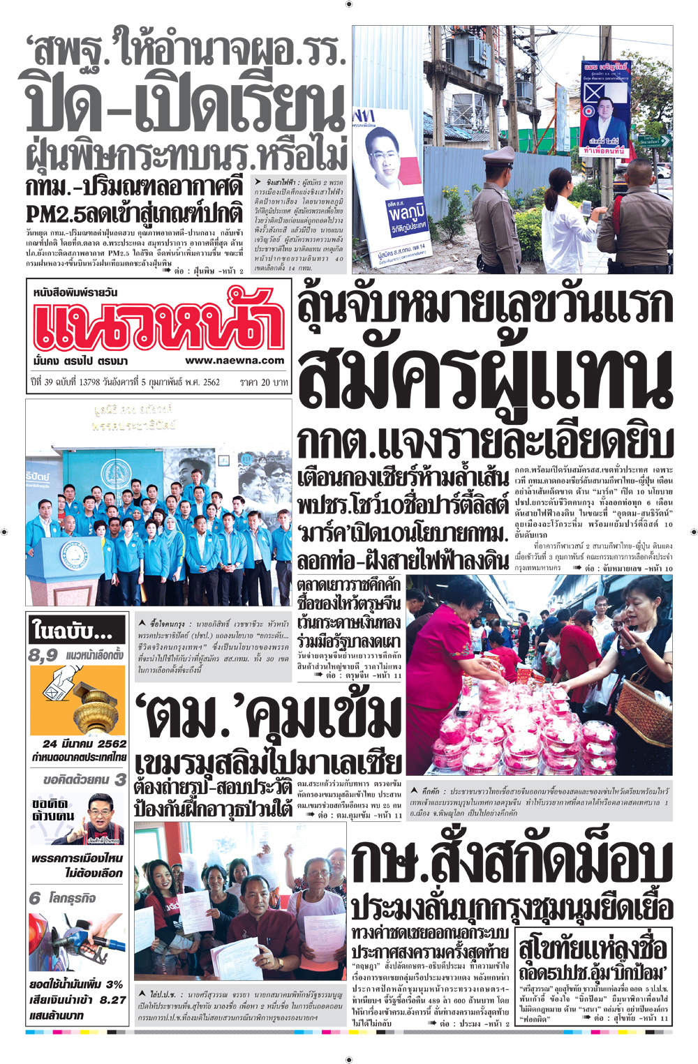 ปีที่ 39 ฉบับที่ 13495 ประจำวัน จันทร์ ที่ 4 กุมภาพันธ์ พ.ศ. 2562