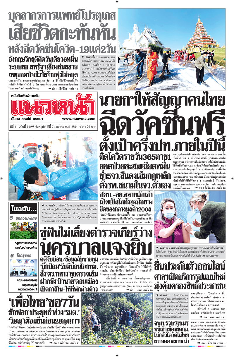 ปีที่ 41 ฉบับที่ 14192 ประจำวัน พฤหัสบดี ที่ 7 มกราคม พ.ศ. 2564