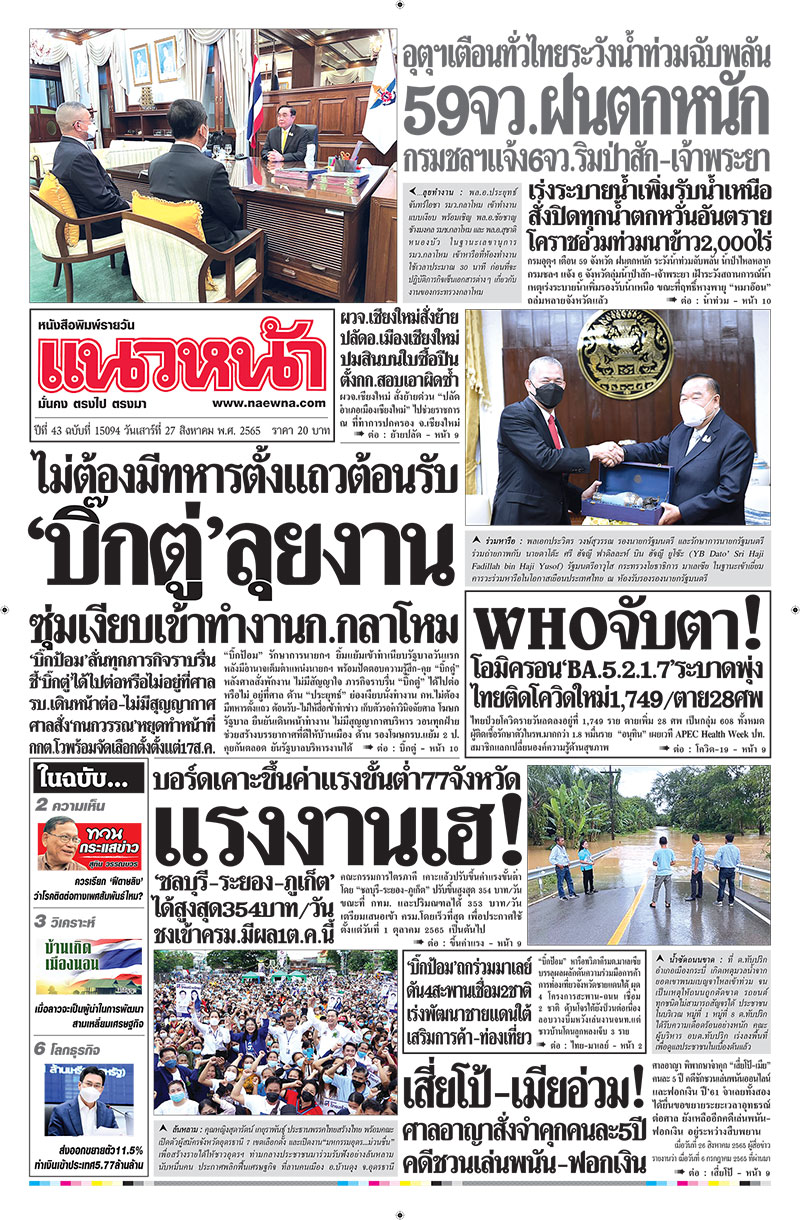 ปีที่ 43 ฉบับที่ 14783 ประจำวัน เสาร์ ที่ 27 สิงหาคม พ.ศ. 2565