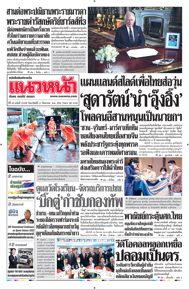 ปีที่ 43 ฉบับที่ 14798 ประจำวัน อาทิตย์ ที่ 11 กันยายน พ.ศ. 2565