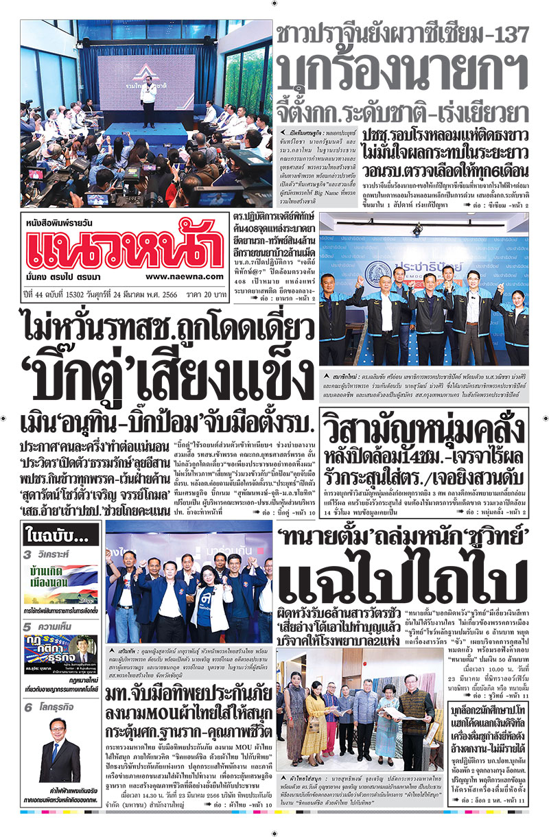 ปีที่ 44 ฉบับที่ 15302 ประจำวัน ศุกร์ ที่ 24 มีนาคม พ.ศ. 2566