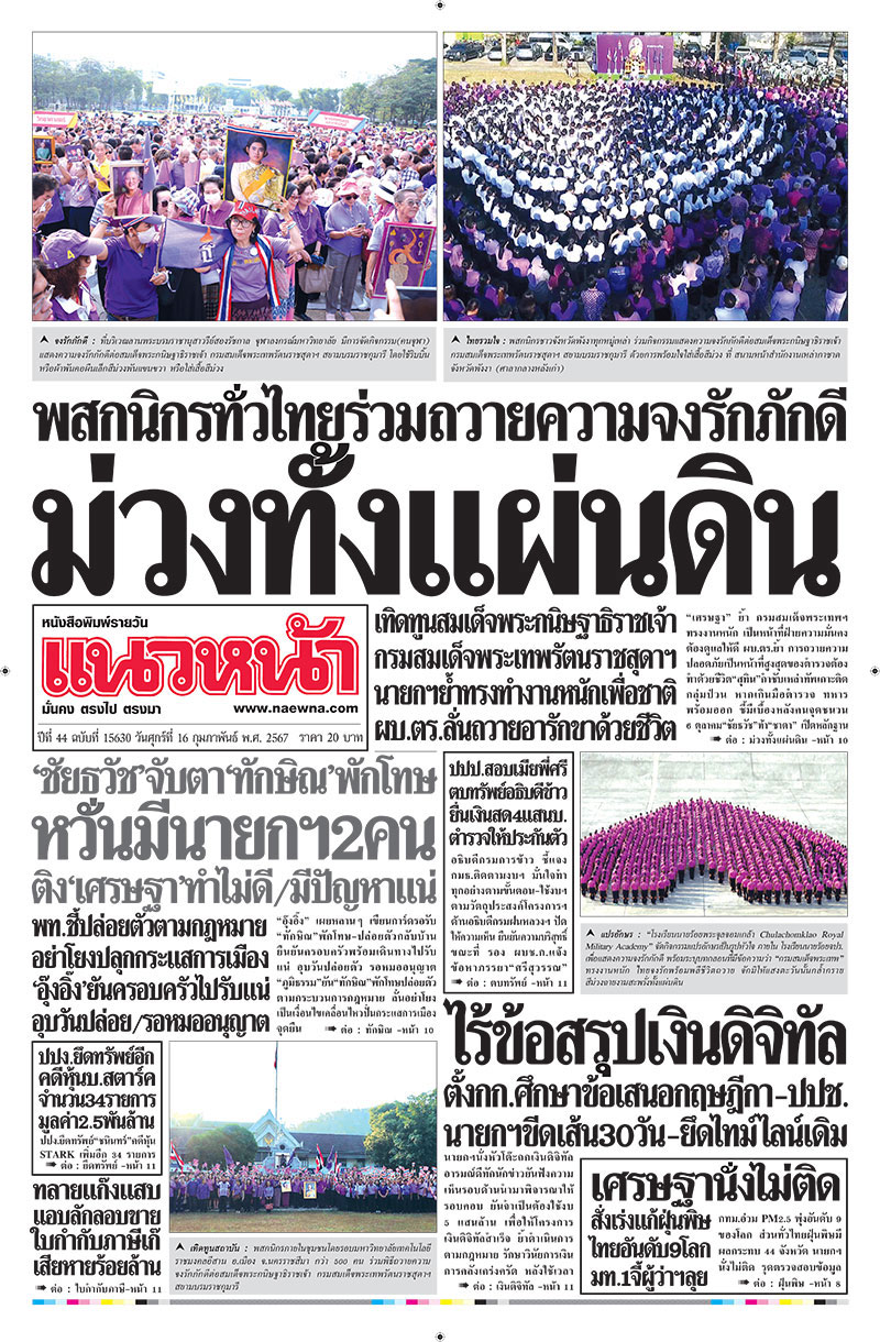 ปีที่ 44 ฉบับที่ 15630 ประจำวัน ศุกร์ ที่ 16 กุมภาพันธ์ พ.ศ. 2567