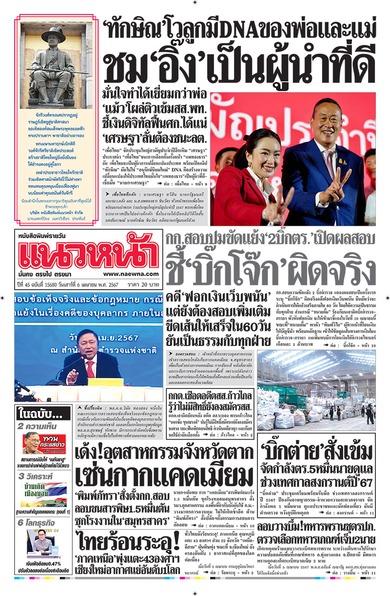 ปีที่ 45 ฉบับที่ 15680 ประจำวัน เสาร์ ที่ 6 เมษายน พ.ศ. 2567