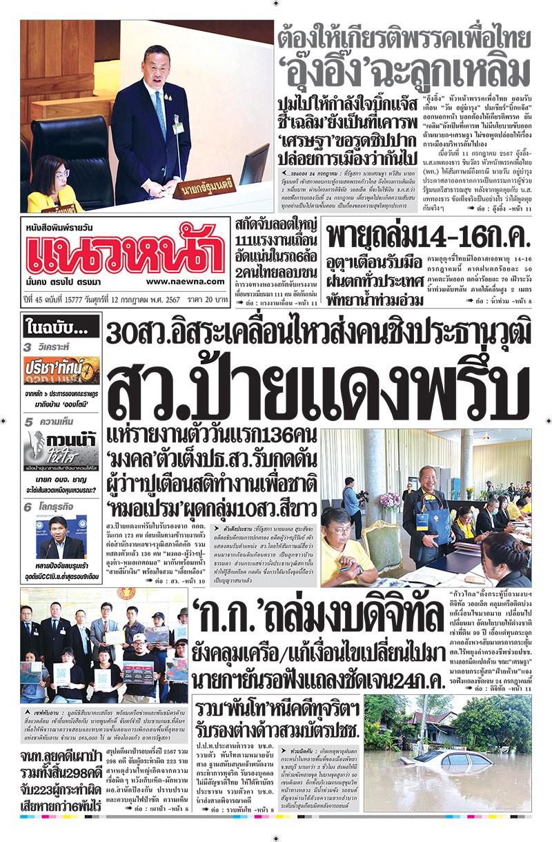 ปีที่ 45 ฉบับที่ 15777 ประจำวัน ศุกร์ ที่ 12 กรกฎาคม พ.ศ. 2567