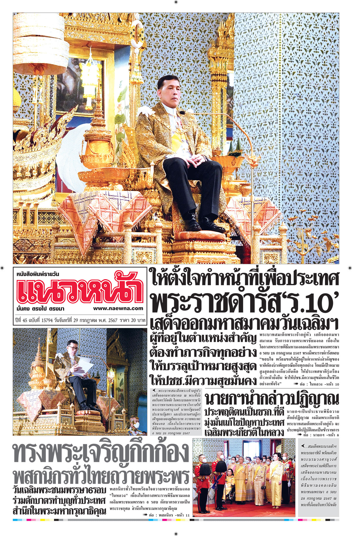 ปีที่ 45 ฉบับที่ 15794 ประจำวัน จันทร์ ที่ 29 กรกฎาคม พ.ศ. 2567