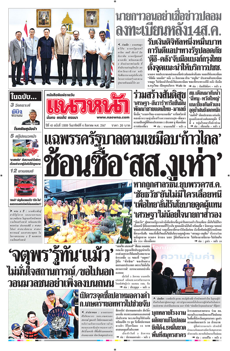 ปีที่ 45 ฉบับที่ 15800 ประจำวัน อาทิตย์ ที่ 4 สิงหาคม พ.ศ. 2567