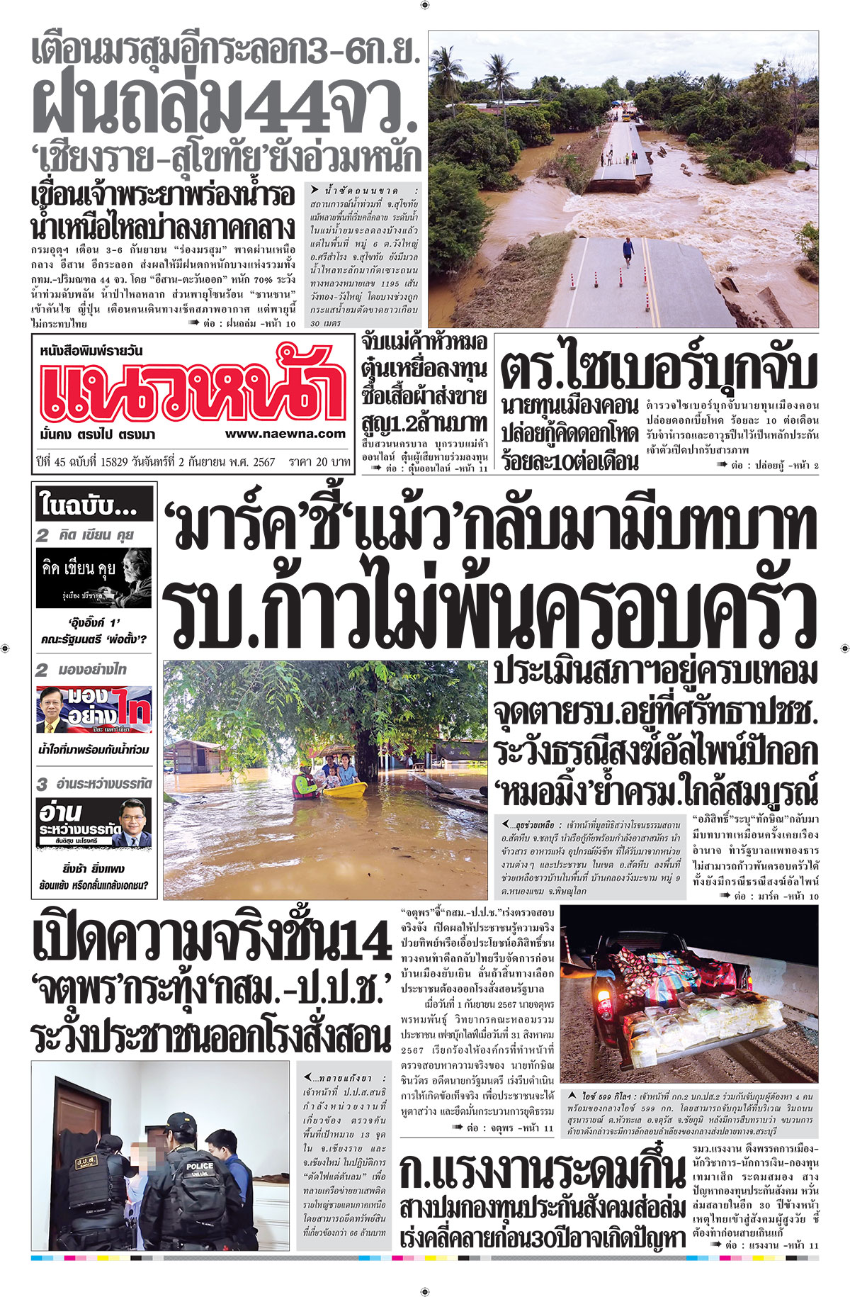 ปีที่ 45 ฉบับที่ 15829 ประจำวัน จันทร์ ที่ 2 กันยายน พ.ศ. 2567