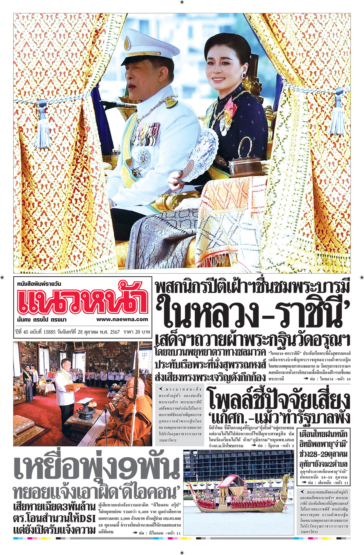 ปีที่ 45 ฉบับที่ 15885 ประจำวัน จันทร์ ที่ 28 ตุลาคม พ.ศ. 2567