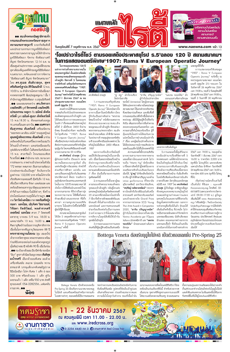 ‘โอเปร่าวาไรตี้โชว์ ตามรอยเสด็จประพาสยุโรป ร.5’ฉลอง 120 ปี สยามสมาคมฯ ในการแสดงดนตรีพิเศษ‘1907: Rama V European Operatic Journey’