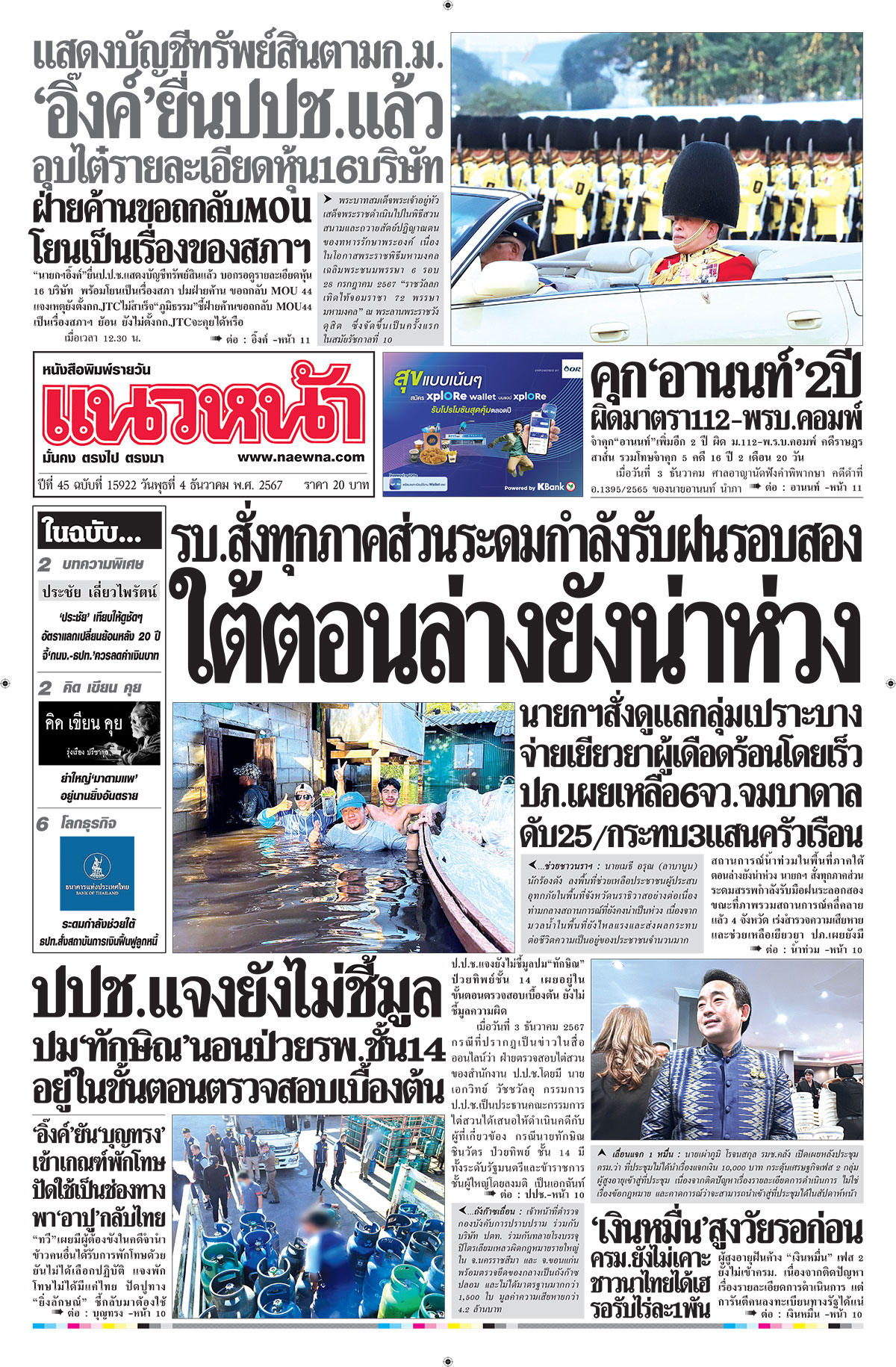 ปีที่ 45 ฉบับที่ 15922 ประจำวัน พุธ ที่ 4 ธันวาคม พ.ศ. 2567
