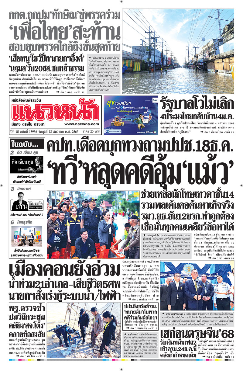 ปีที่ 45 ฉบับที่ 15936 ประจำวัน พุธ ที่ 18 ธันวาคม พ.ศ. 2567