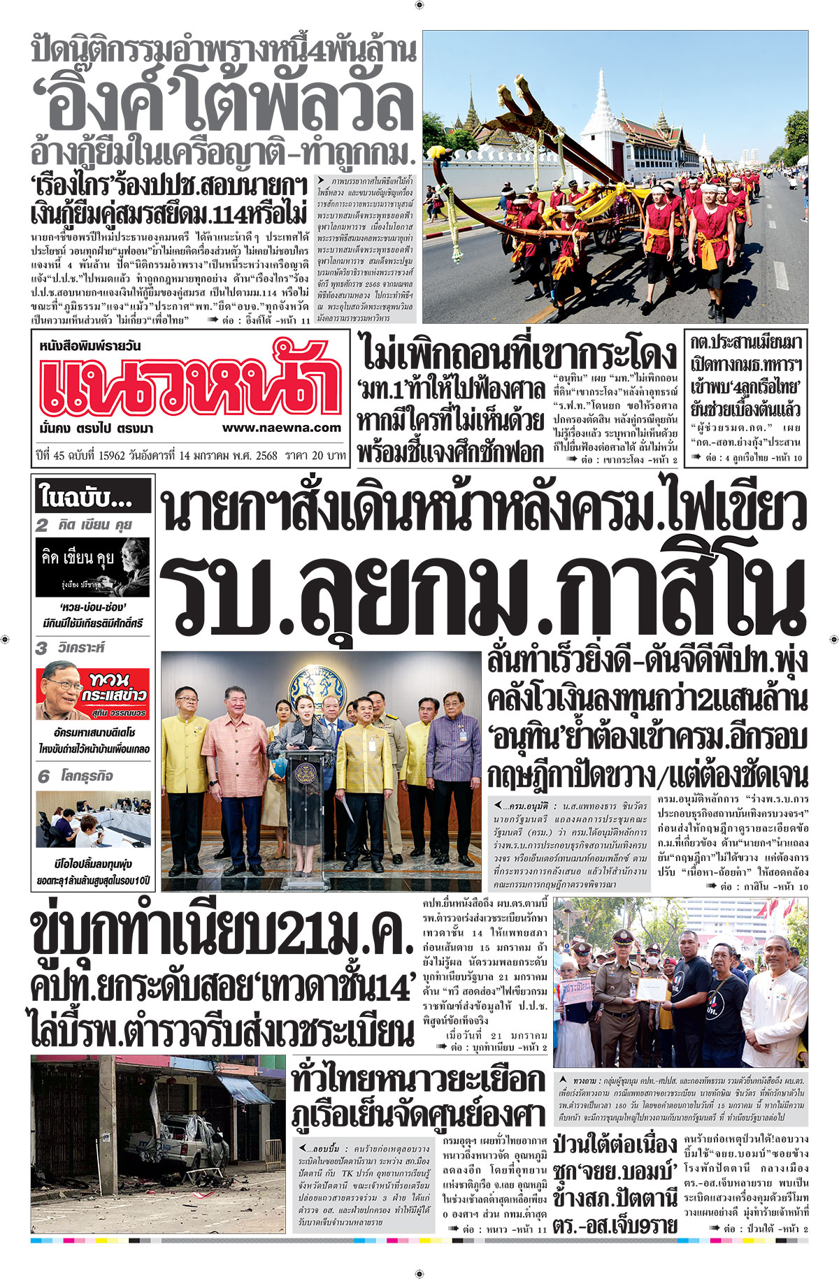 ปีที่ 45 ฉบับที่ 15961 ประจำวัน อังคาร ที่ 14 มกราคม พ.ศ. 2568