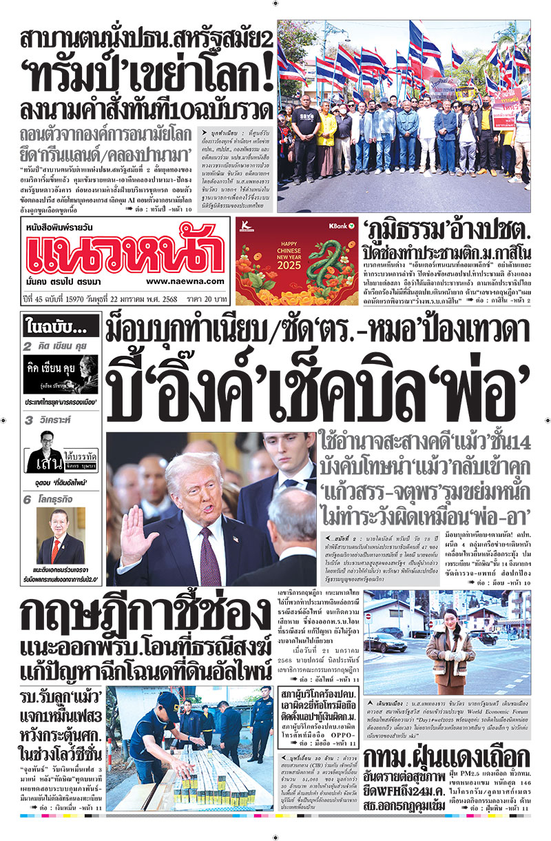 ปีที่ 45 ฉบับที่ 15969 ประจำวัน พุธ ที่ 22 มกราคม พ.ศ. 2568