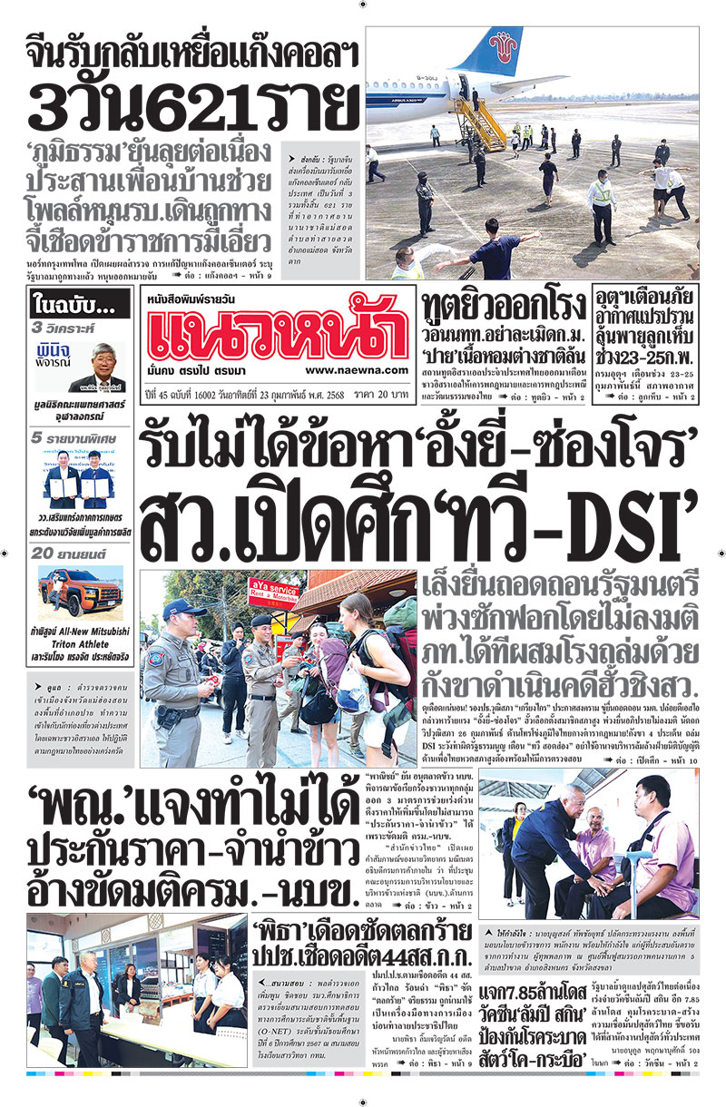 ปีที่ 45 ฉบับที่ 16002 ประจำวัน อาทิตย์ ที่ 23 กุมภาพันธ์ พ.ศ. 2568