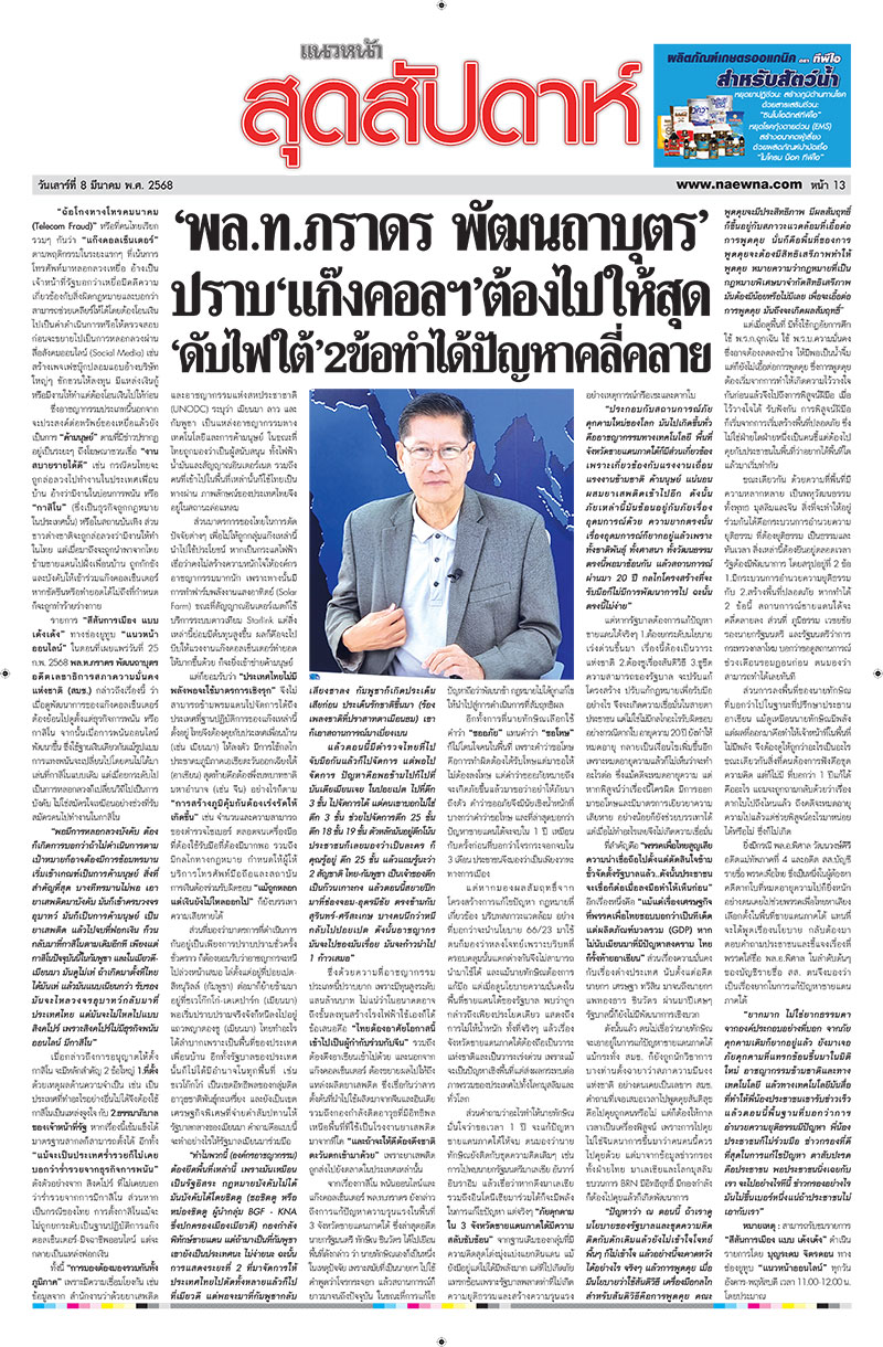 ‘พล.ท.ภราดร พัฒนถาบุตร’ ปราบ‘แก๊งคอลฯ’ต้องไปให้สุด ‘ดับไฟใต้’2ข้อทำได้ปัญหาคลี่คลาย