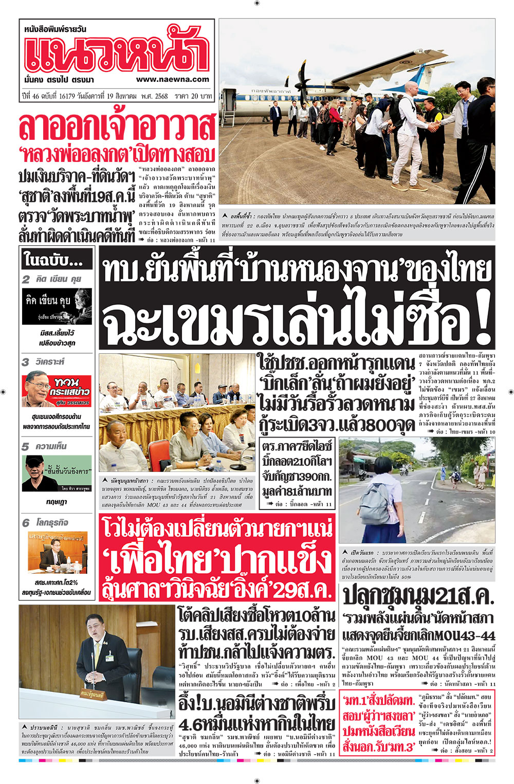 ปีที่ 46 ฉบับที่ 16179 ประจำวัน อังคาร ที่ 19 สิงหาคม พ.ศ. 2568