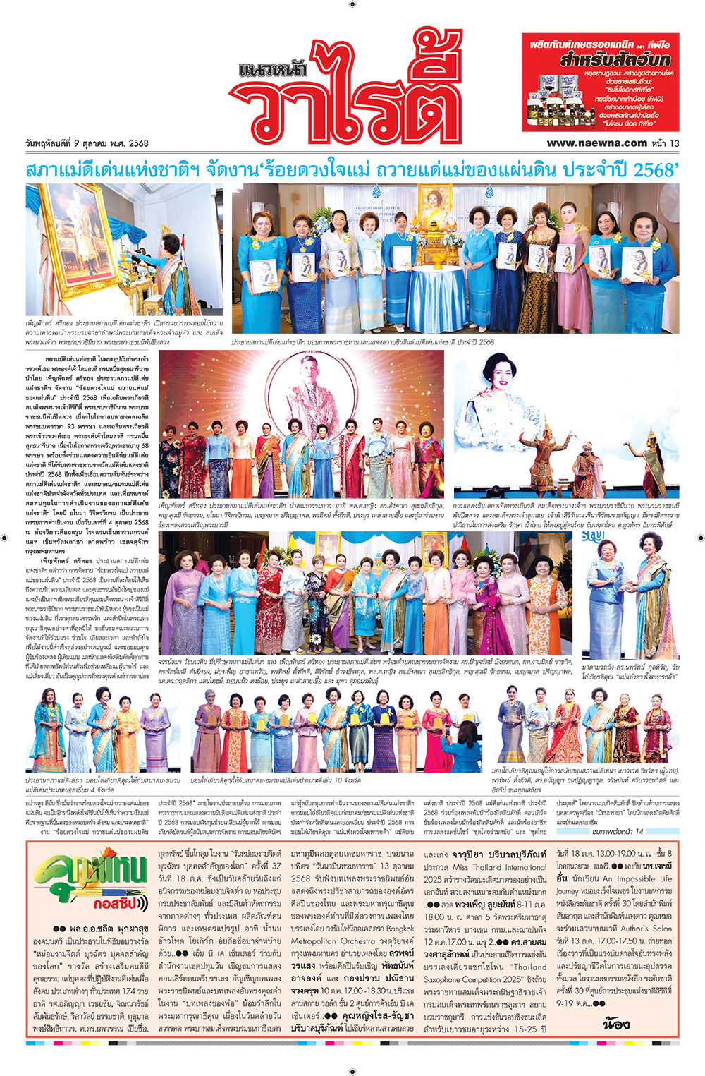 ปีที่ 46 ฉบับที่ 16230 ประจำวัน พฤหัสบดี ที่ 9 ตุลาคม พ.ศ. 2568