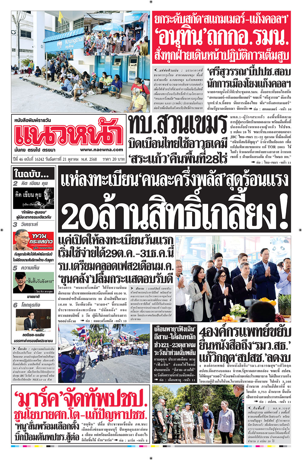 ปีที่ 46 ฉบับที่ 16242 ประจำวัน อังคาร ที่ 21 ตุลาคม พ.ศ. 2568