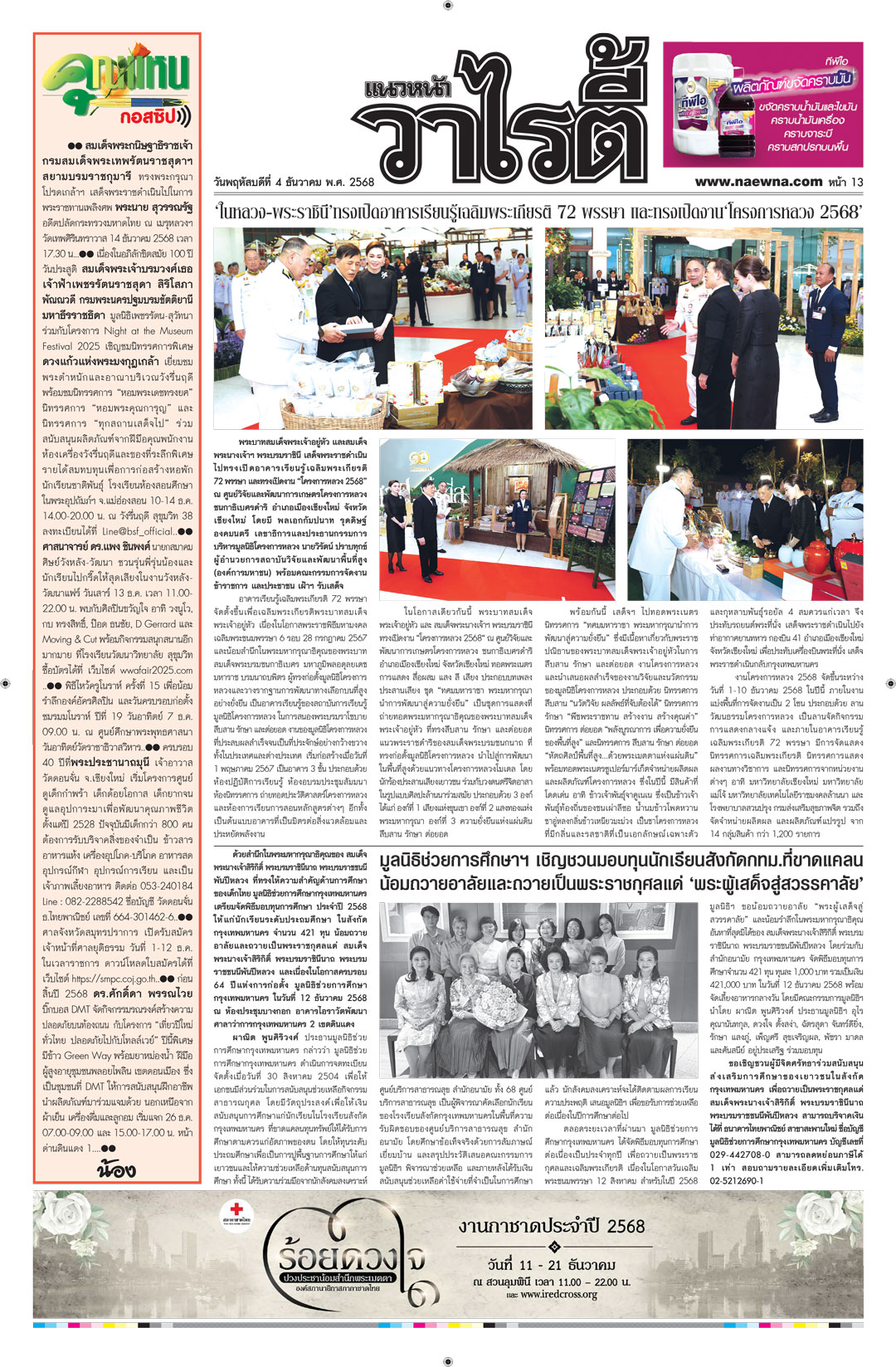 ปีที่ 46 ฉบับที่ 12686 ประจำวัน พฤหัสบดี ที่ 4 ธันวาคม พ.ศ. 2568