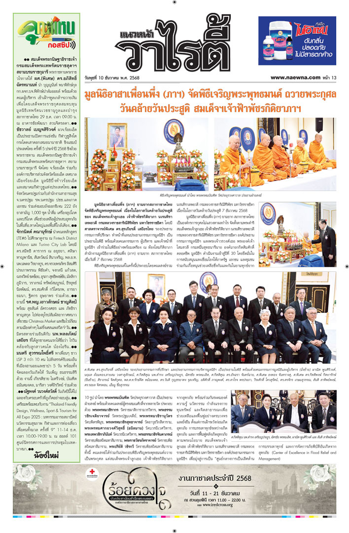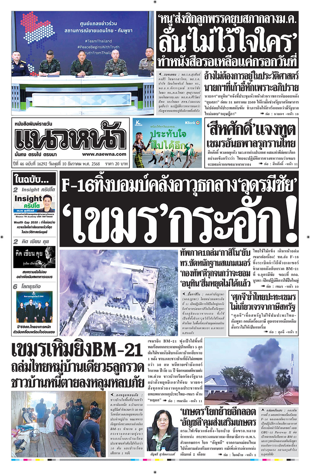 ปีที่ 46 ฉบับที่ 12692 ประจำวัน พุธ ที่ 10 ธันวาคม พ.ศ. 2568
