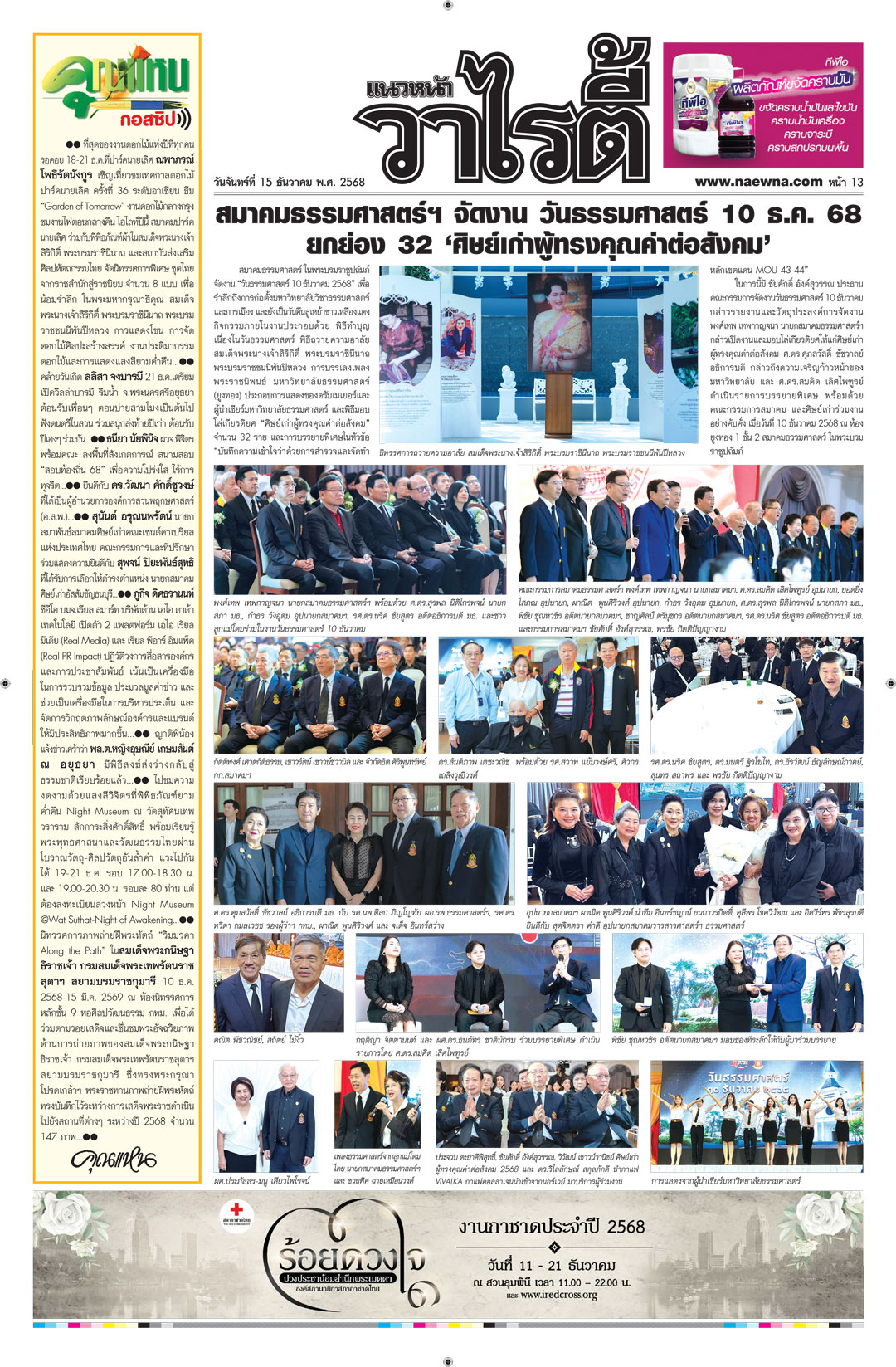 ปีที่ 46 ฉบับที่ 12697 ประจำวัน จันทร์ ที่ 15 ธันวาคม พ.ศ. 2568
