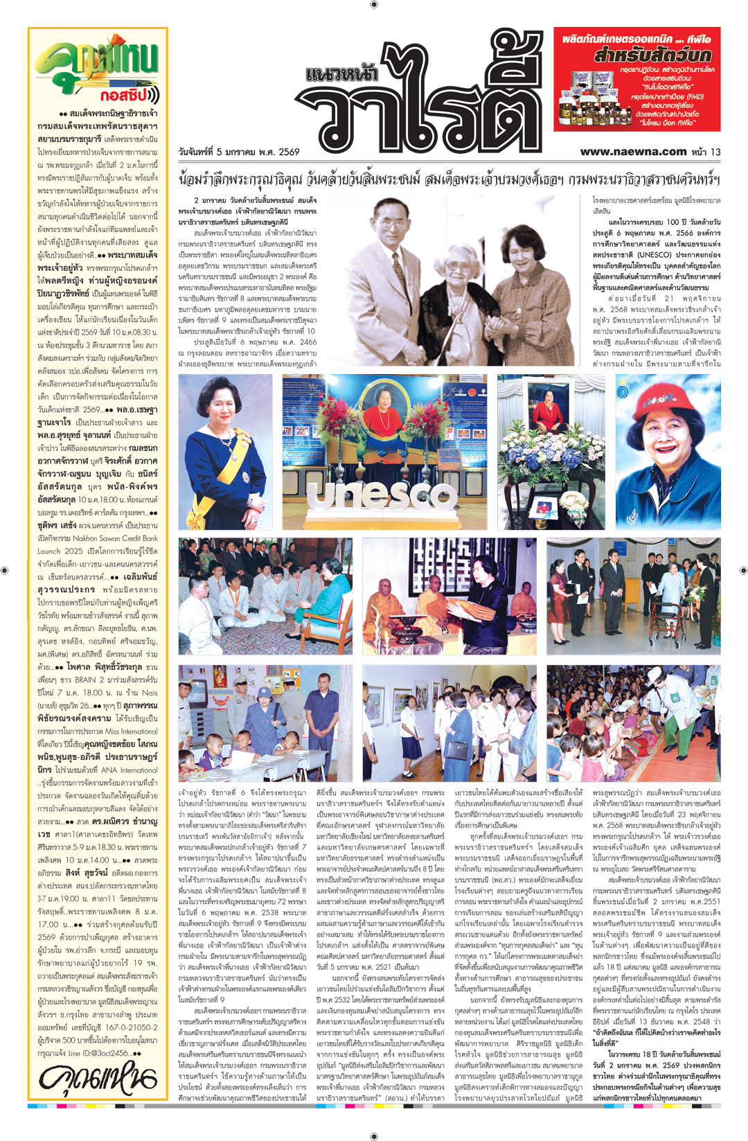 ปีที่ 46 ฉบับที่ 16317 ประจำวัน จันทร์ ที่ 5 มกราคม พ.ศ. 2569