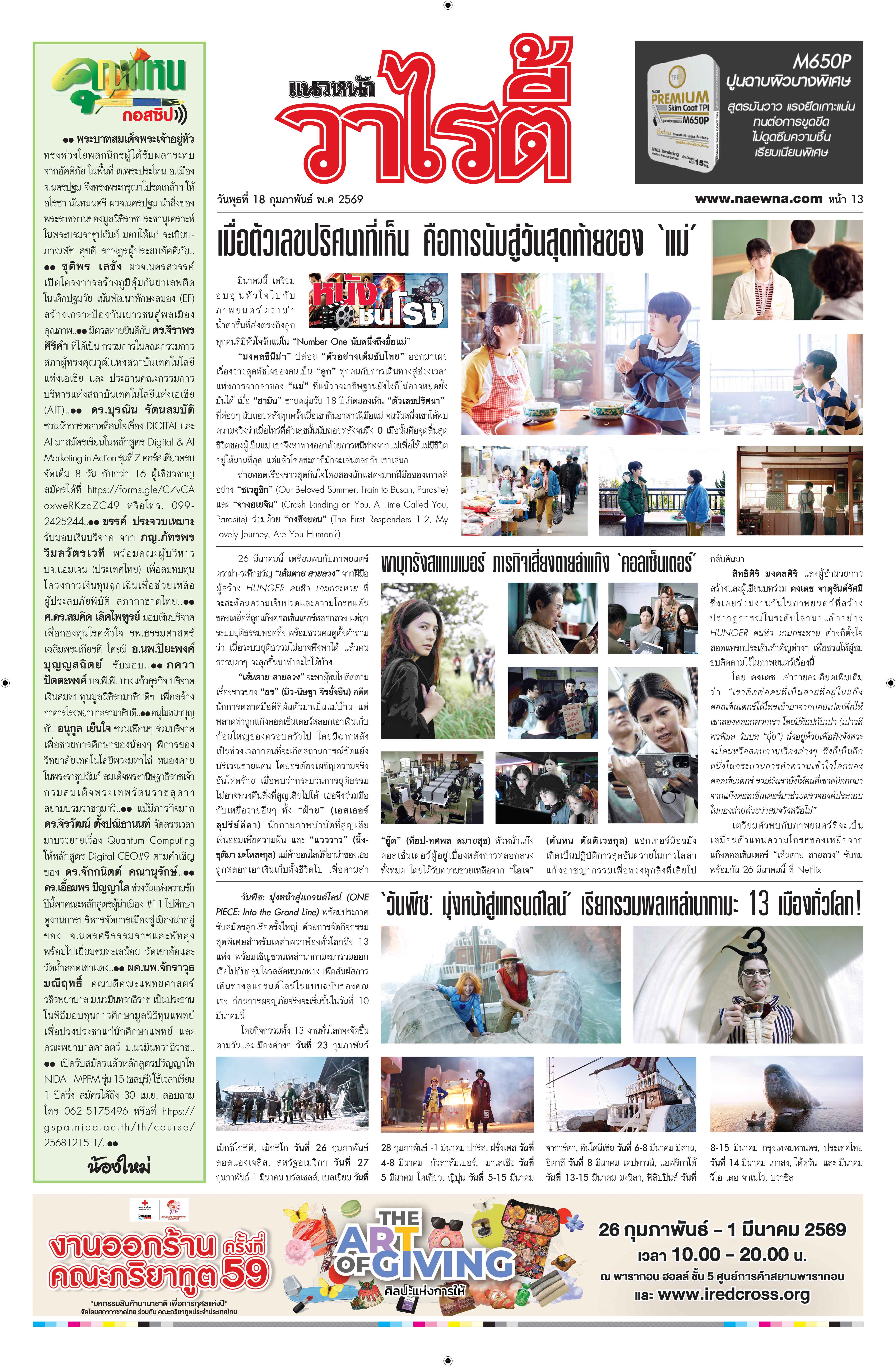 ปีที่ 46 ฉบับที่ 16361 ประจำวัน พุธ ที่ 18 กุมภาพันธ์ พ.ศ. 2569