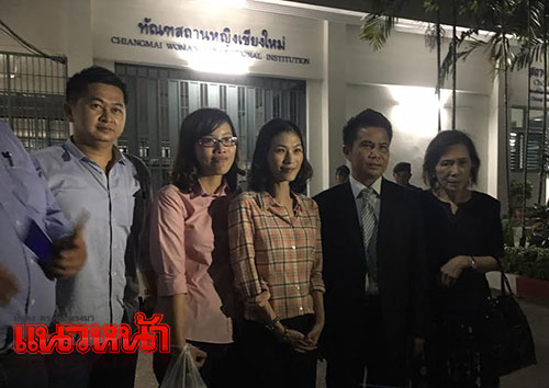 27 ส.ค. 59 ผู้สื่อข่าวรายงานว่า เมื่อช่วงค่ำวานนี้ (26ส.ค.) บิดาและมารดาของน.ส.ทัศนีย์ บูรณุปกรณ์ รองนายกองค์การบริหารส่วนจังหวัดเชียงใหม่ และอดีต ส.ส.จังหวัดเชียงใหม่ และน้องสาว คือ นางสาวธารทิพย์ บูรณุปกรณ์ ทันตแพทย์ชำนาญการ เทศบาลตำบลช้างเผือก รวมทั้งญาติๆ และเพื่อนสนิท เดินทางมารอรับตัวทั้งสองที่หน้าทัณฑสถานหญิงเชียงใหม่ หลังจากศาลทหารพิจารณาให้ประกันตัว พร้อมพวกทั้งหมดรวม 12 คน ภายหลังจากทีมทนายความยื่นหลักทรัพย์ขอประกันตัวต่อศาลทหาร วงเงินประกันรายละ 1 แสนบาท โดยมีเงื่อนไขในการให้ประกันตัวว่า ห้ามออกนอกราชอาณาจักร และห้ามมีพฤติกรรมยั่วยุทำให้เกิดการปลุกปั่นหรือวุ่นวายในบ้านเมือง