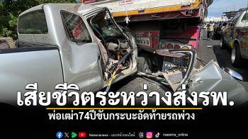 พ่อเฒ่า74ขับกระบะอัดท้ายรถพ่วง พังยับติดภายใน เสียชีวิตระหว่างส่งรพ.