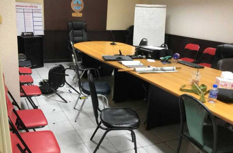อย่างไรก็ตาม ขณะที่พูดคุยกันปรากฏว่า นายโชคชัย ไม่สามารถควบคุมอารมณ์ได้ และยืนด่าทอเจ้าหน้าที่ ก่อนที่จะทำลายข้าวของภายในห้องสอบสวน ทำให้เครื่องโปรเจคเตอร์และจอคอมพิวเตอร์แบบตั้งโต๊ะของส่วนตัวเจ้าหน้าที่พังเสียหาย เจ้าหน้าจึงควบคุมตัวก่อนแจ้งข้อหาทำให้เสียทรัพย์กับนายโชคชัย ก่อนนำตัวส่ง สน.หัวหมาก เพื่อดำเนินคดี