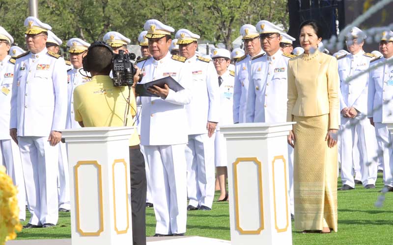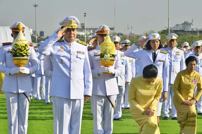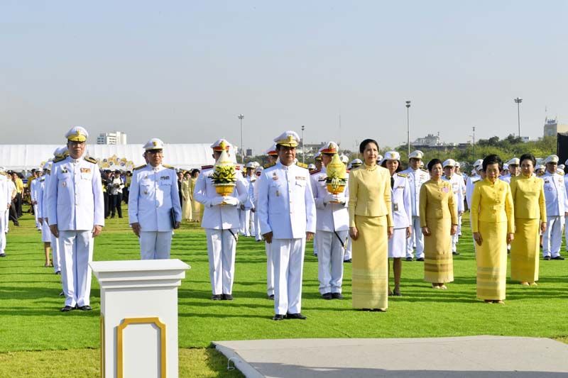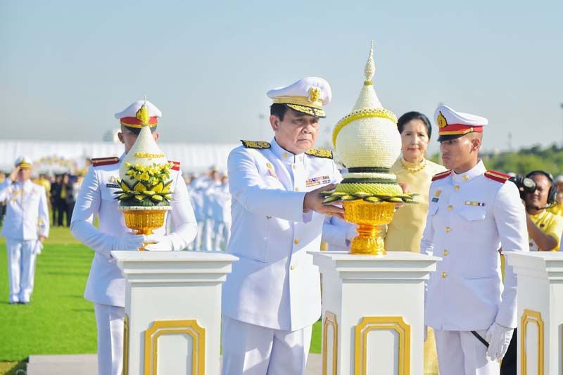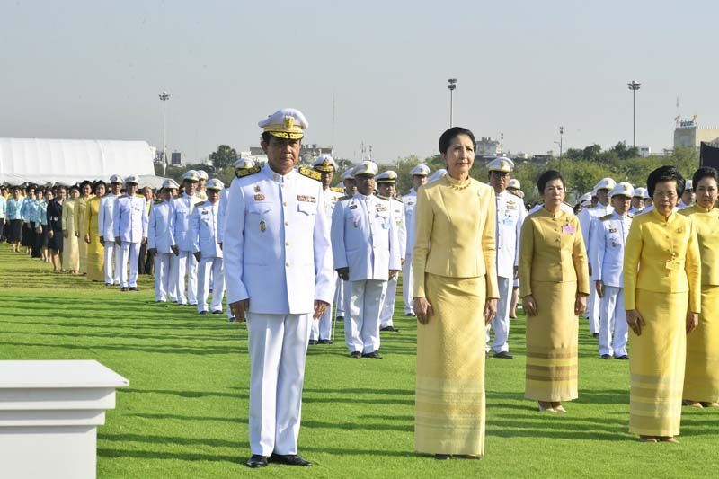 ทั้งนี้นายกรัฐมนตรีและภริยาถวายความเคารพ ด้านหน้าพระบรมฉายาลักษณ์พระบาทสมเด็จพระปรมินทรมหาภูมิพลอดุลยเดช บรมนาถบพิตร และวางพานพุ่ม 2 พาน ในนามนายกรัฐมนตรี และคณะรัฐมนตรี ภริยานายกรัฐมนตรี วางพานพุ่ม ในนามคณะคู่สมรสคณะรัฐมนตรี ณ ด้านหน้าพระบรมฉายาลักษณ์ฯ