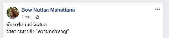 นอกจากนี้ น.ส.ณัฏฐา มหัทธนา หรือ "โบว์" แกนนำกลุ่มคนอยากเลือกตั้ง ได้โพสต์ข่าวดังกล่าวในเฟซบุ๊ค พร้อมระบุว่า น้องเฟเข้มแข็งเสมอ วีรดา หมายถึง “ความกล้าหาญ”