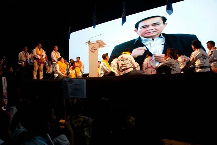 จากนั้น ระหว่างที่นายอุตตม ปราศรัยก็ได้มีการเปิดคลิป พล.อ.ประยุทธ์ ตอนที่ 2 โดยมีเนื้อหาว่า สวัสดีครับพ่อแม่พี่น้องคนไทยที่รักยิ่ง วันนี้ผมได้มีโอกาสมาพบปะพูดคุยกับเรา ในเวทีที่มีคนมาเป็นจำนวนมาก จริงๆบรรยากาศเหล่านี้หาไม่ได้มากนักหรอก ในช่วงที่ผ่านมา วันนี้แสดงว่า สถานการณ์บ้านเมืองกำลังสงบอยู่ สิ่งที่ผมอยากจะพูดเป็นเรื่องแรกคือ การขอคืนความรักความสามัคคีของพวกเราคนไทยทุกคน ให้กลับมาหลอมรวมเป็นหัวใจดวงเดียวกัน ในการจะช่วยกันนำพาประเทศชาติ ไปสู่ความสงบสุข ความสมานฉันท์ การปรองดอง ต้องใช้มือของทุกคน 68 ล้านคนทำให้ได้ มันถึงจะสำเร็จ เมื่อเราคืนความรักความสามัคคีมาได้แล้ว ฝากหัวใจให้เต็มไปด้วยความรักชาติ ศาสน์ กษัตริย์ สถาบันอันเป็นที่รักยิ่งของเราแล้วทุกอย่างเราจะทำให้สำเร็จทั้งหมด ไม่ว่าจะคนรุ่นเก่าคนรุ่นใหม่ เกษตรกรผู้มีรายได้น้อย ทั้งหมดเราจะช่วยกันนำพาไป ถ้าเราสร้างเสถียรภาพให้เกิดขึ้นในประเทศไทยได้ ความสงบสุขเกิดขึ้นได้ โอกาสก็จะมาทันที เราอย่าทำโอกาสให้เป็นวิกฤต โดยเฉพาะอย่างยิ่ง ในช่วงการเปลี่ยนผ่านประเทศไทยในวันนี้