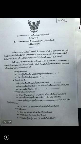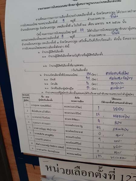 1 พ.ค.62 ผู้สื่อข่าวรายงานว่า เพจเฟซบุ๊ก “พรรคอนาคตใหม่” โพสต์รูปภาพ พร้อมข้อความ ระบุว่า ทำไมการจัดการเลือกตั้งและการนับคะแนนใหม่ของนครปฐมเขต 1 จึงผิดปกติ? นอกจากผลคะแนนเลือกตั้งของเขตนี้จะเปลี่ยนพลิกไปมาถึง 5 ครั้ง จนไม่สามารถหาคะแนนที่ชอบธรรมและเป็นที่ยอมรับของทุกฝ่ายได้ เรายังพบความผิดปกติของตัวเลขต่างๆ ในการนับคะแนนครั้งที่ 1 เมื่อ 24 มีนาคม 2562 เปรียบเทียบกับครั้งที่ 2 เมื่อ 28 เมษายน 2562 เพิ่มขึ้นอีก ได้แก่