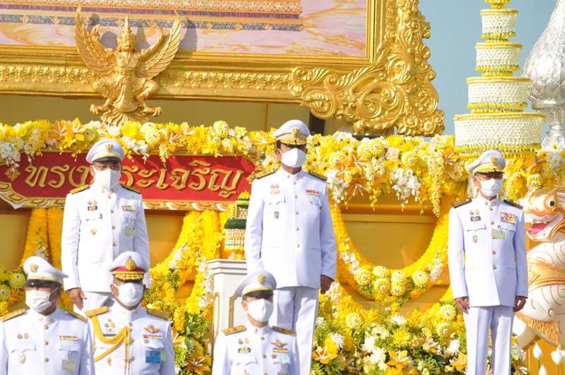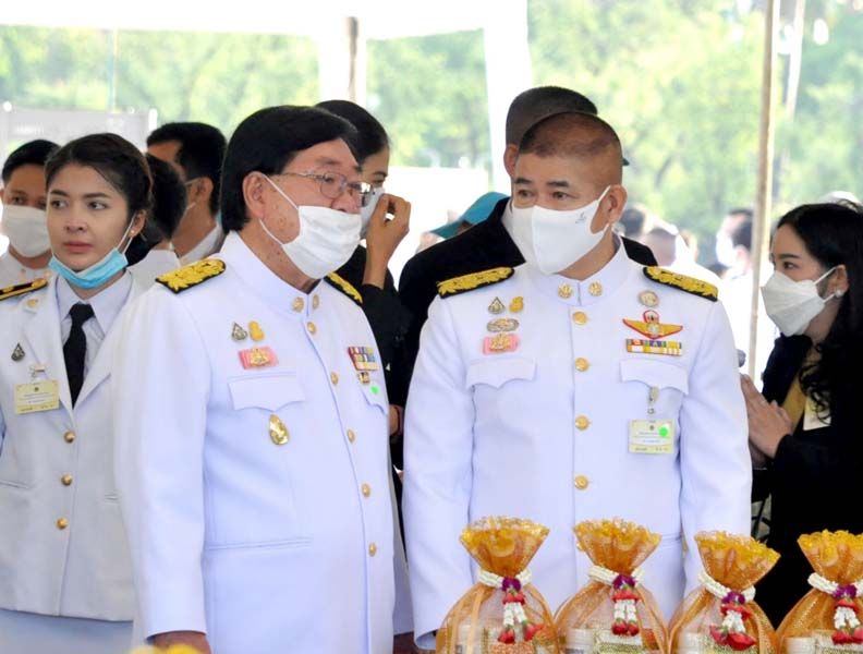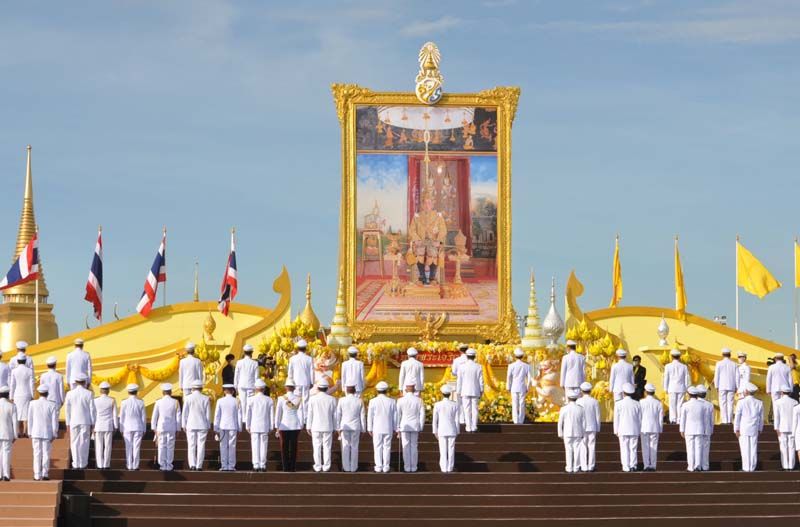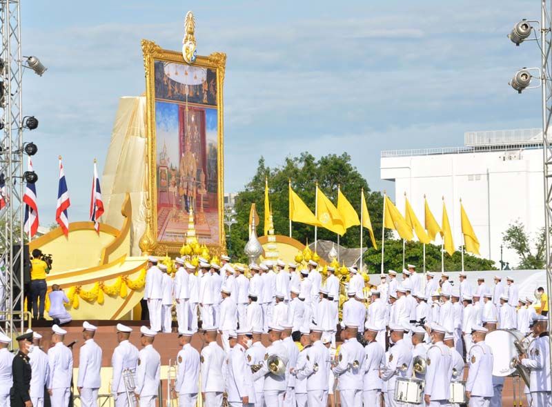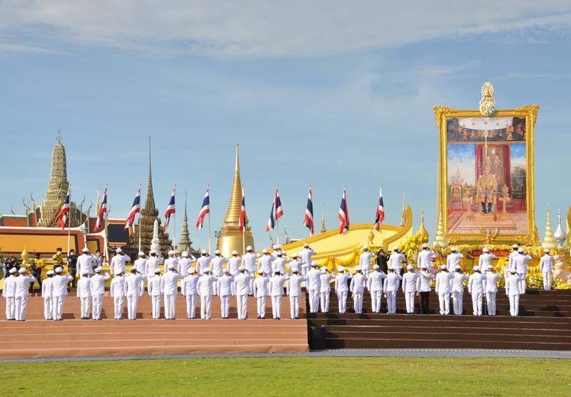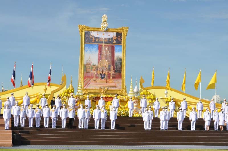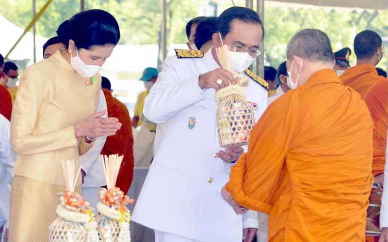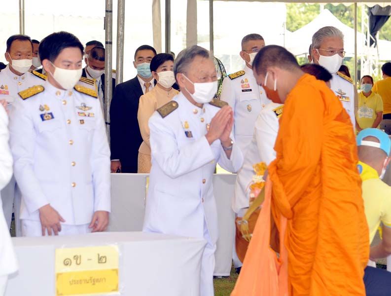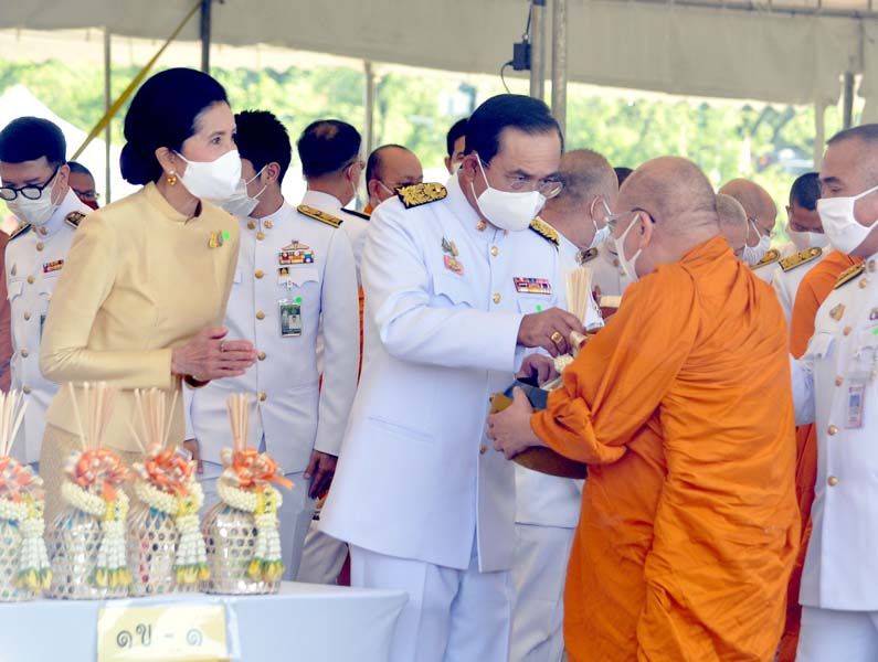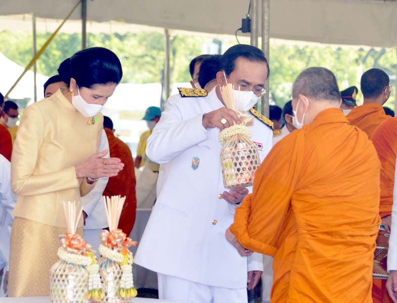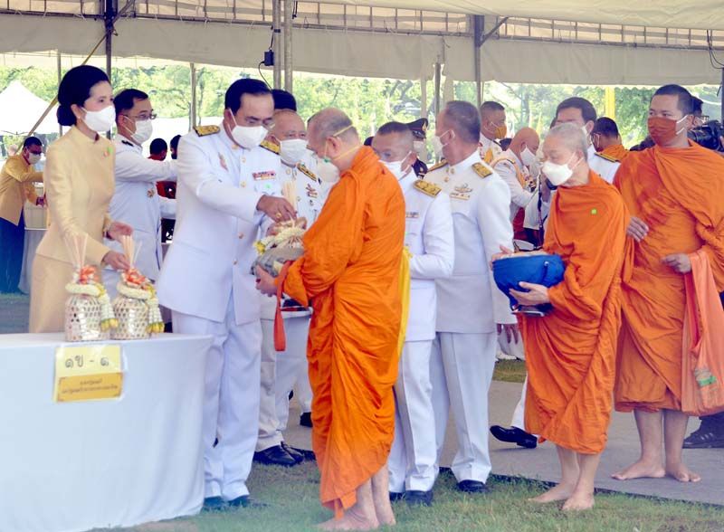 เมื่อนายกฯและภริยาเดินทางถึงปะรำพิธีท้องสนามหลวง พระสงฆ์จำนวน 10 รูป ขึ้นนั่งอาสน์สงฆ์ นายกฯจุดธูปเทียนบูชาพระรัตนตรัย เปิดกรวยกระทงดอกไม้ธูปเทียนแพ หน้าพระบรมฉายาลักษณ์พระบาทสมเด็จพระเจ้าอยู่หัว พระสงฆ์ให้ศีล เจริญพระพุทธมนต์ จากนั้น นายกฯถวายผ้าไตรและเครื่องไทยธรรมแด่พระสงฆ์ จำนวน 10 รูป พระสงฆ์อนุโมทนา ถวายอดิเรก นายกรัฐมนตรีกรวดน้ำแล้ว กราบนมัสการพระรัตนตรัยหน้าโต๊ะหมู่บูชา เสร็จแล้วถวายความเคารพหน้าพระบรมฉายาลักษณ์พระบาทสมเด็จเจ้าอยู่หัว จากนั้น นายกฯและภริยา นำผู้ร่วมงาน ร่วมกิจกรรมทำบุญตักบาตรพระสงฆ์และสามเณร จำนวน 69 รูป