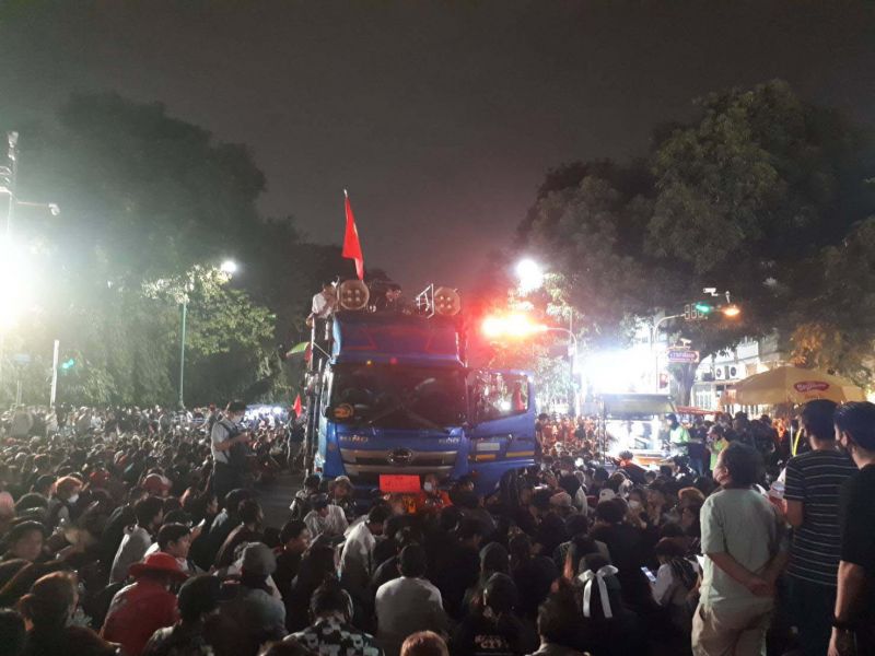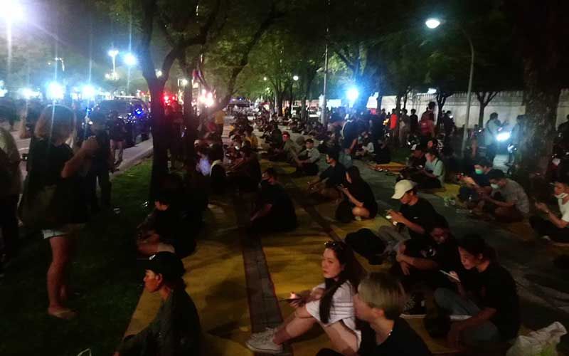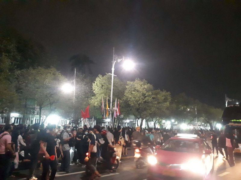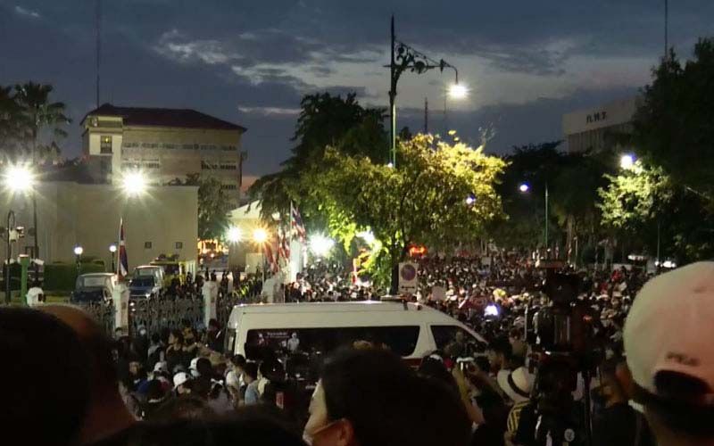 ล่าสุดมีรายงานว่ากลุ่มผู้ชุมนุมบางส่วนได้พยายามจะเคลื่อนไปทางพระลานพระบรมรูปทรงม้า แต่ทางแกนนำได้ปรามให้กลับมาอยู่บริเวณรอบทำเนียบรัฐบาลเท่านั้น ต่อมาเวลา 19:00 น.แกนนำประกาศพรุ่งนี้ ( 15 ต.ค.) จะมียกระดับขึ้นเรื่อยๆ โดยจะปักหลักชุมนุมจนกว่า พล.อ.ประยุทธ์ จันทร์โอชา นายกรัฐมนตรี และรมว.กลาโหม จะลาออก และล่าสุดผู้ชุมนุมตั้งรถปราศัยใหญ่แยกมิสกวัน จนกระทั่งเวลา 19.08 น. เส้นทางมุ่งหน้าลานพระบรมรูปฯถูกปิดแล้ว