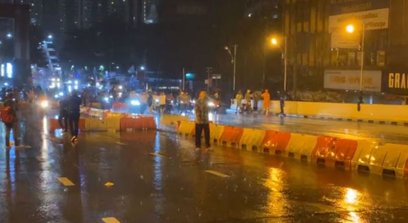 ทั้งนี้ ทางเจ้าหน้าที่ตำรวจได้มีเจ้าหน้าที่ป้องกันฝูงชน และเตรียมรถฉีดน้ำมาสมทบ 2 คัน และประกาศขอให้ผู้ชุมนุมออกจากพื้นที่ และเดินทางกลับบ้าน โดยประกาศว่าเจ้าหน้าที่ไม่ต้องการที่จะทำร้ายประชาชน และเจ้าหน้าที่ได้มีการประกาศให้ออกจากพื้นผิวจราจรอีกครั้งก่อนที่จะฉีดน้ำสกัดอีก ในขณะที่กลุ่มผู้ชุมนุมยังปักหลักอยู่