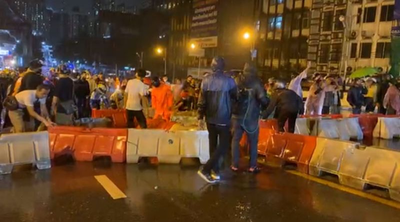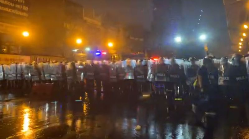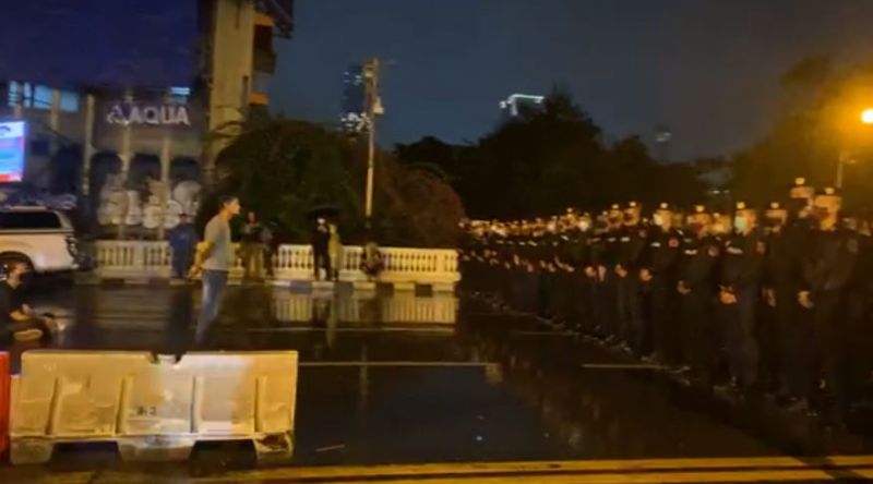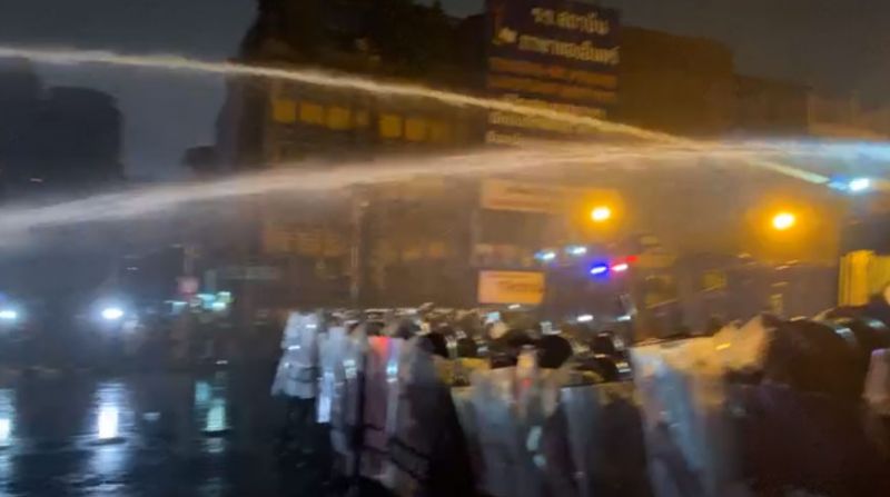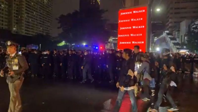 22.04 น. ตำรวจประกาศให้ประชาชนออกจากผิวจราจร หากไม่ถอยภายใน 1 นาที จะมีการใช้น้ำ