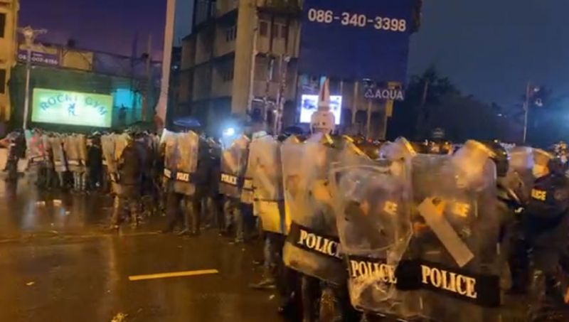 22.27 น. จนท.ผลักดันผู้ชุมนุมและมีการไล่จับผู้ชุมนุมที่อยู่ในซอยด้วย