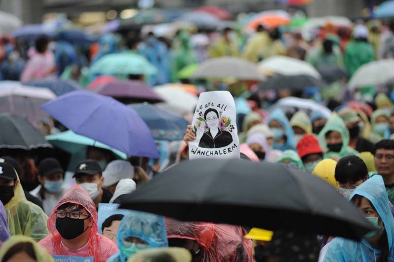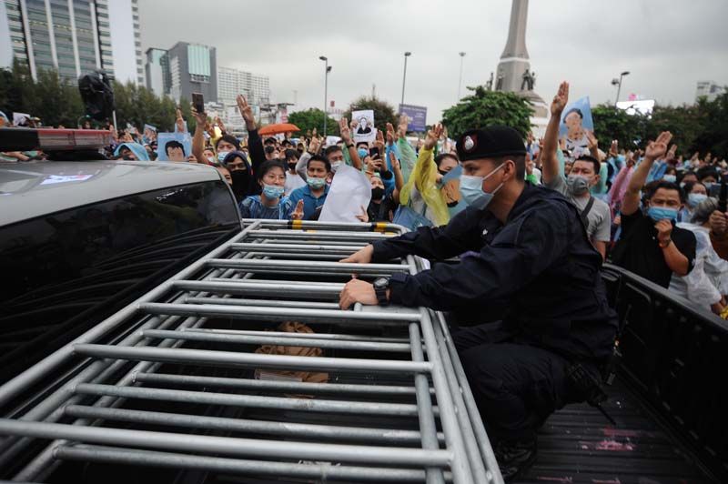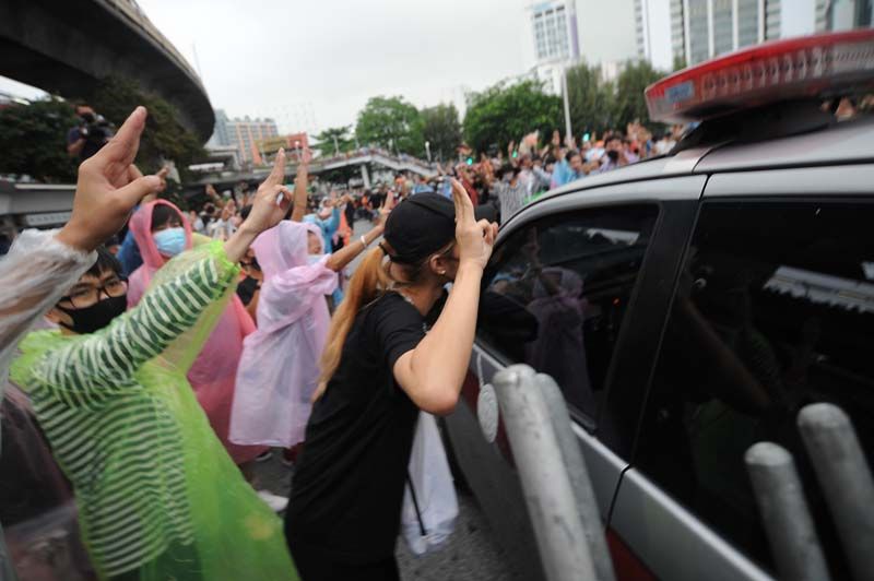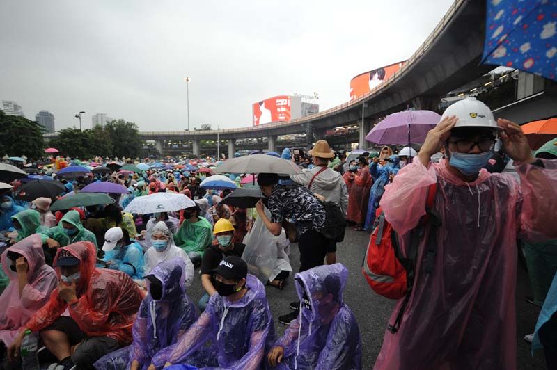 ขณะที่เวลา 18.22 น.แนวป้องกันหน้า รพ.ราชวิถี ประกาศให้ผู้ชุมนุมเดินขึ้นทางเท้า พร้อมมีกระแสข่าวว่า อาจมีการนำรถน้ำเข้ามาสลายจากจุดนี้