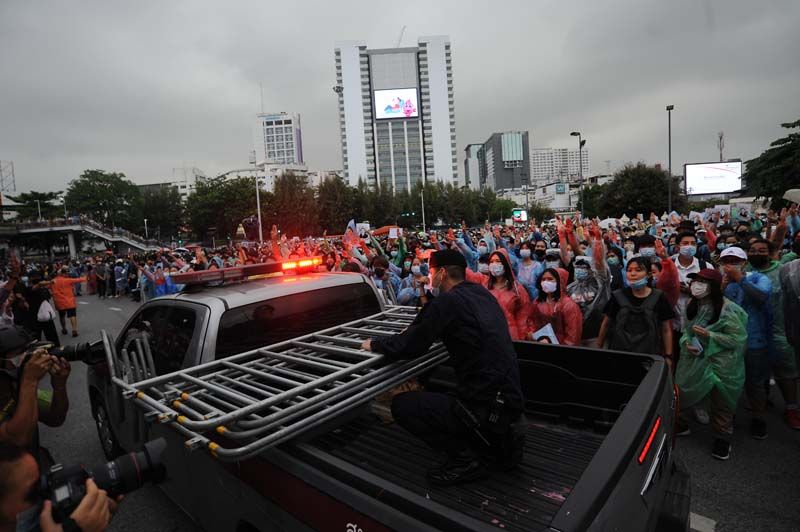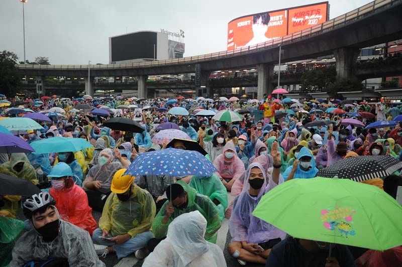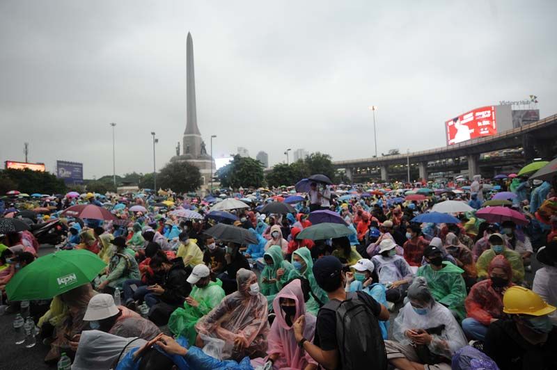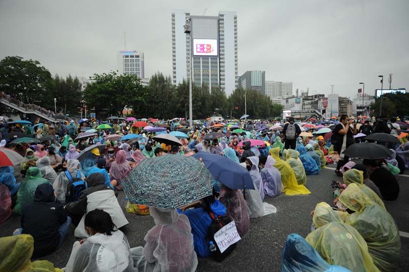 เมื่อเวลา 18.06 น.วันที่ 18 ตุลาคม 2563 ที่อนุสาวรีย์ชัยสมรภูมิ ได้มีการตั้งจุดปราศรัย พร้อมมีการประกาศผ่านไมค์ ขอใครก็ได้ที่ปราศรัยได้ให้ขึ้นมาปราศรัย โดยมวลชนที่อนุสาวรีย์ชัยฯ ได้เริ่มมีการปราศรัยแล้ว ทั้งนี้ ผู้ปราศรัยได้มีการประกาศว่า "ถ้าได้ยินเสียงพลุให้สลายตัว ยุติการชุมนุมทันที"