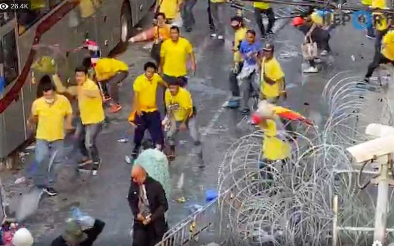 17 พ.ย.63 TLHR / ศูนย์ทนายความเพื่อสิทธิมนุษยชน รายงานว่า เมื่อเวลา 17.13 น. ที่แยกเกียกกาย บริเวณแนวรั้วที่สองหลังสะพานลอย มีการขว้างปาสิ่งของใส่กันระหว่างกลุ่มผู้ชุมนุมคณะราษฎร และกลุ่มเสื้อเหลือง โดยที่ตำรวจควบคุมฝูงชนที่อยู่ใกล้เคียงไม่ได้เข้ามาควบคุมแต่อย่างใด