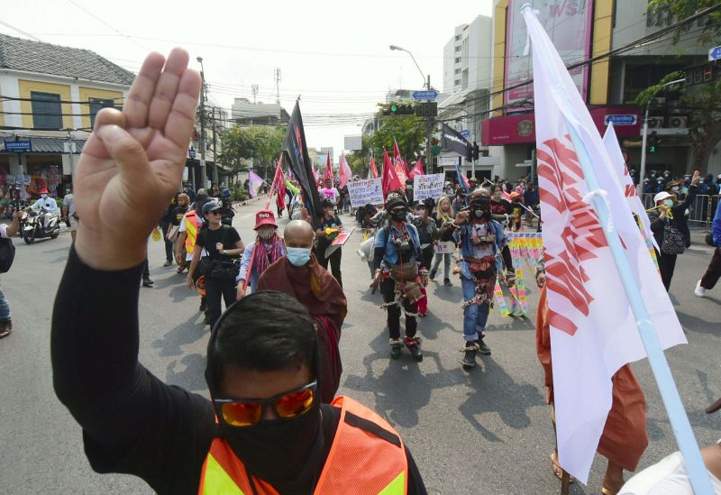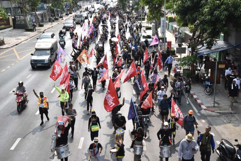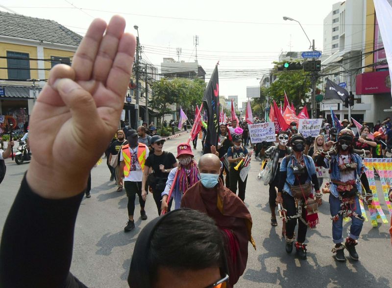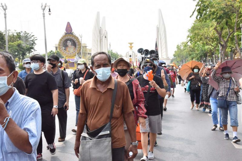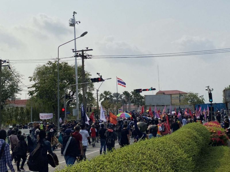 3 นิ้วเริ่มเดินทะลุฟ้าV.2แล้ว! มุ่งหน้าทำเนียบฯ สร้างหมู่บ้าน เขียนรธน.ปชช. เจอแนว ‘คฝ.’ สกัดปิดแยกผ่านฟ้า ขอเลี่ยงใช้เส้นทาง ใช้เวลาประมาณ 1 ชั่วโมงทะลุถึงทำเนียบแล้ว