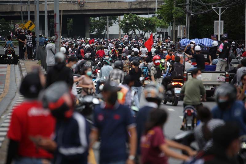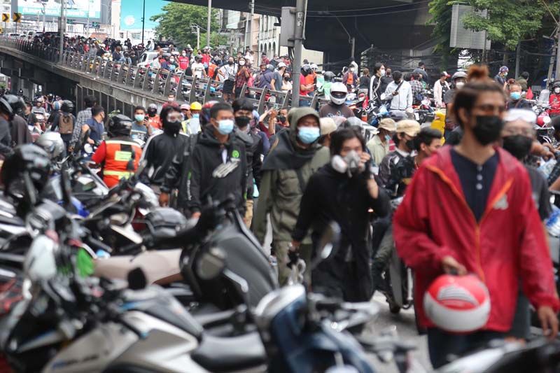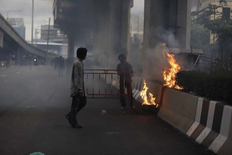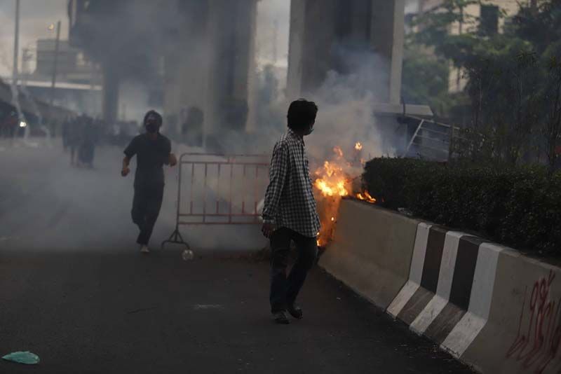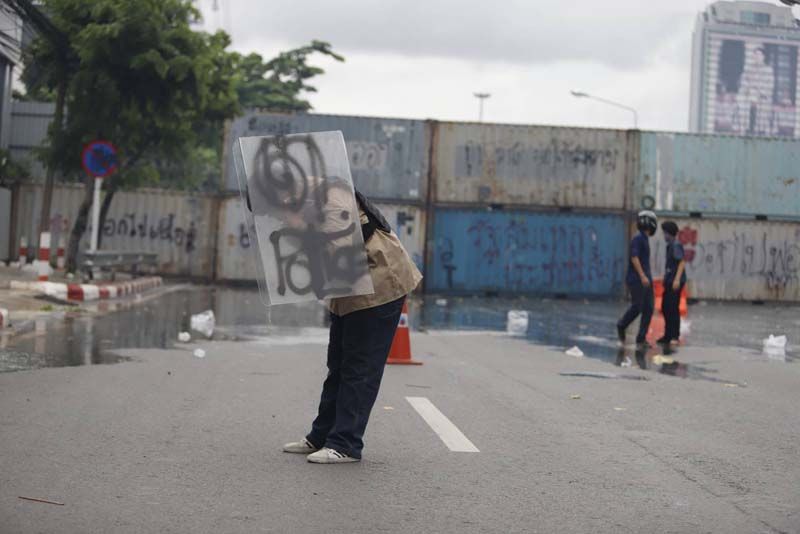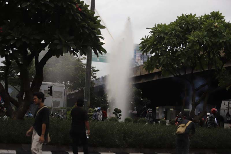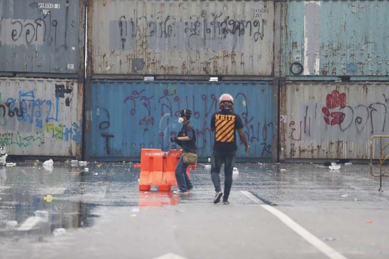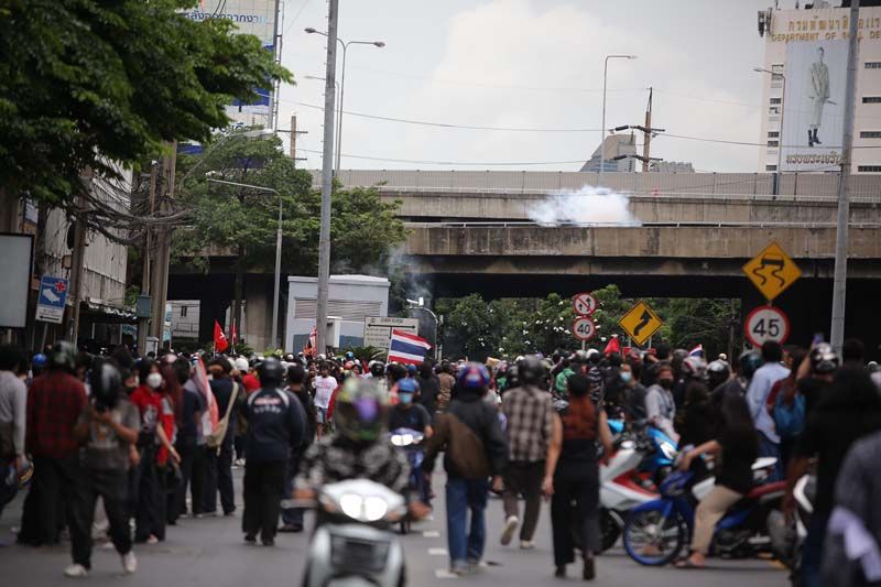 ขณะที่ผู้สื่อข่าวรายงานว่า ตั้งแต่เมื่อเวลา 17.00 น.เป็นต้นมา ที่บริเวณแยกดินแดง กลุ่มผู้ชุมนุมม็อบ 3 นิ้ว ที่ส่วนใหญ่เป็นกลุ่มนักเรียนนักศึกษาอาชีวะ ได้เริ่มเปิดฉากเข้าปะทะกับเจ้าหน้าที่ตำรวจควบคุมฝูงชน (คฝ.) มีการขว้างปาสิ่งของ อาทิ ปะทัดยักษ์ ระเบิดปิงปอง พลุ จนเกิดเสียงดังอย่างต่อเนื่อง ขณะที่เจ้าหน้าที่ คฝ.ได้นำรถฉีดน้ำแรงดันสูง หรือจีโน่ ขึ้นไปบนทางด่วนดินแดง และฉีดน้ำ รวมถึงแก๊สน้ำตา เพื่อสกัดผู้ชุมนุมเป็นระยะๆ (ข่าวที่เกี่ยวข้อง : จลาจลดินแดง!ม็อบ ปะทะเดือด จุดไฟเผาป้อมตร.อีกแล้ว-แก๊สน้ำตาว่อน)